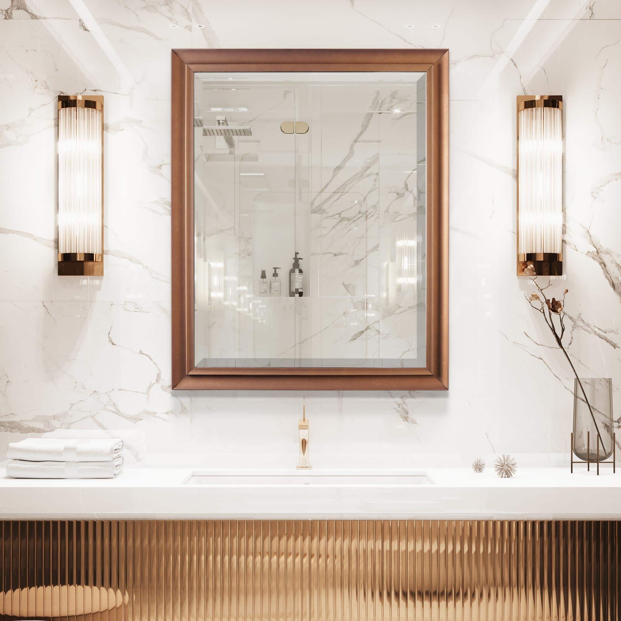 Antique Gold Classic Frame Rectangular Beveled Wall Mirror - 26" x 32"