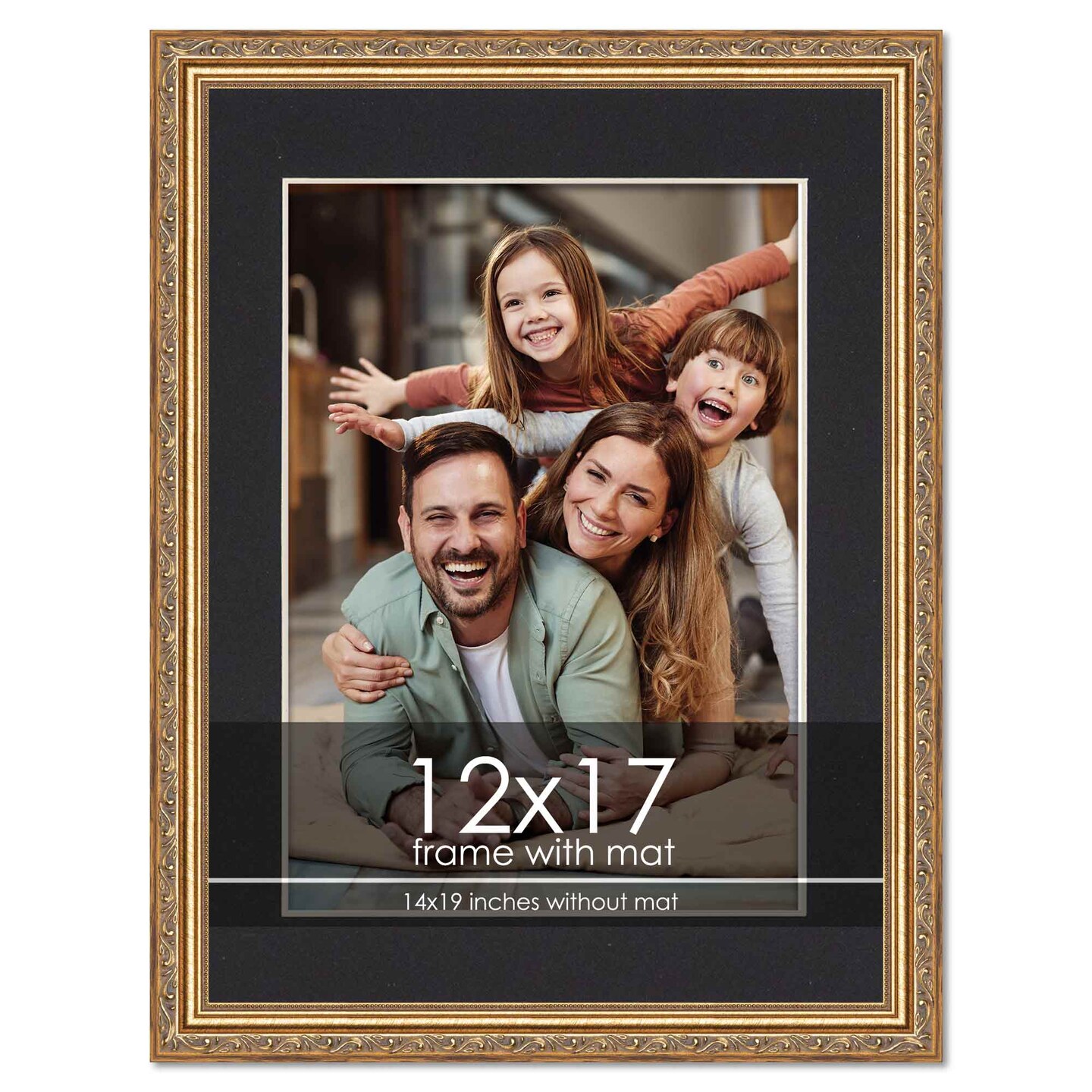 Antique Gold Frame with Black Photo Mat, UV Acrylic Front, Foam Board Backing, 60 Sizes Available