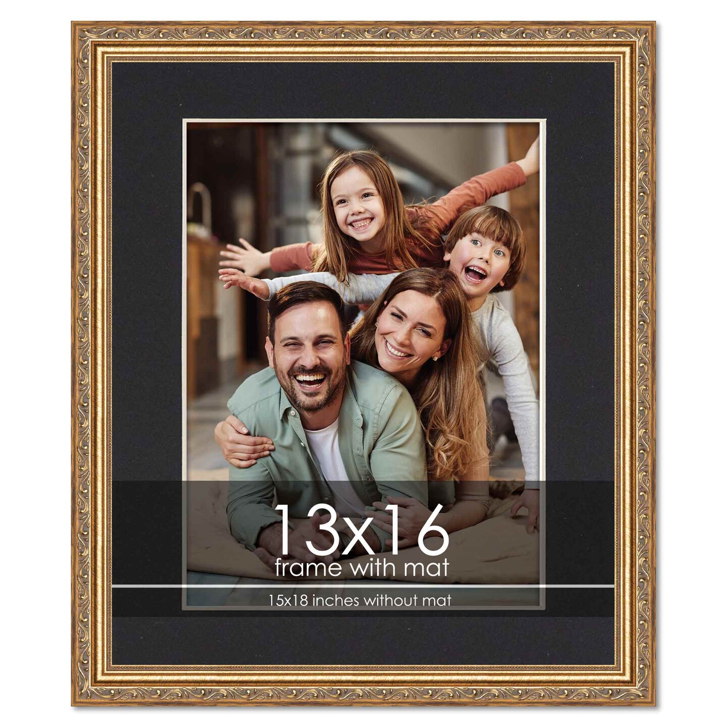 Antique Gold Frame with Black Photo Mat, UV Acrylic Front, Foam Board Backing, 60 Sizes Available