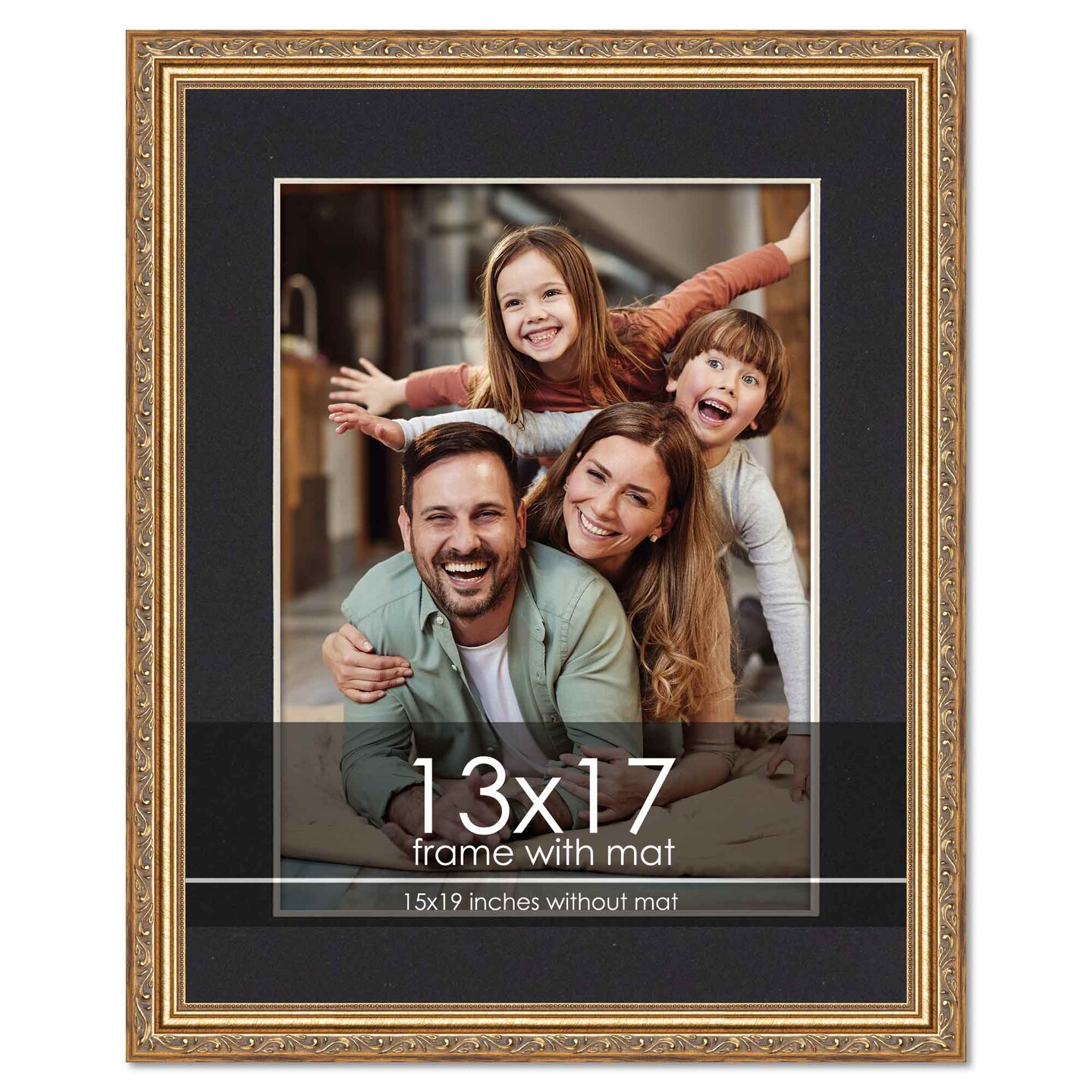 Antique Gold Frame with Black Photo Mat, UV Acrylic Front, Foam Board Backing, 60 Sizes Available