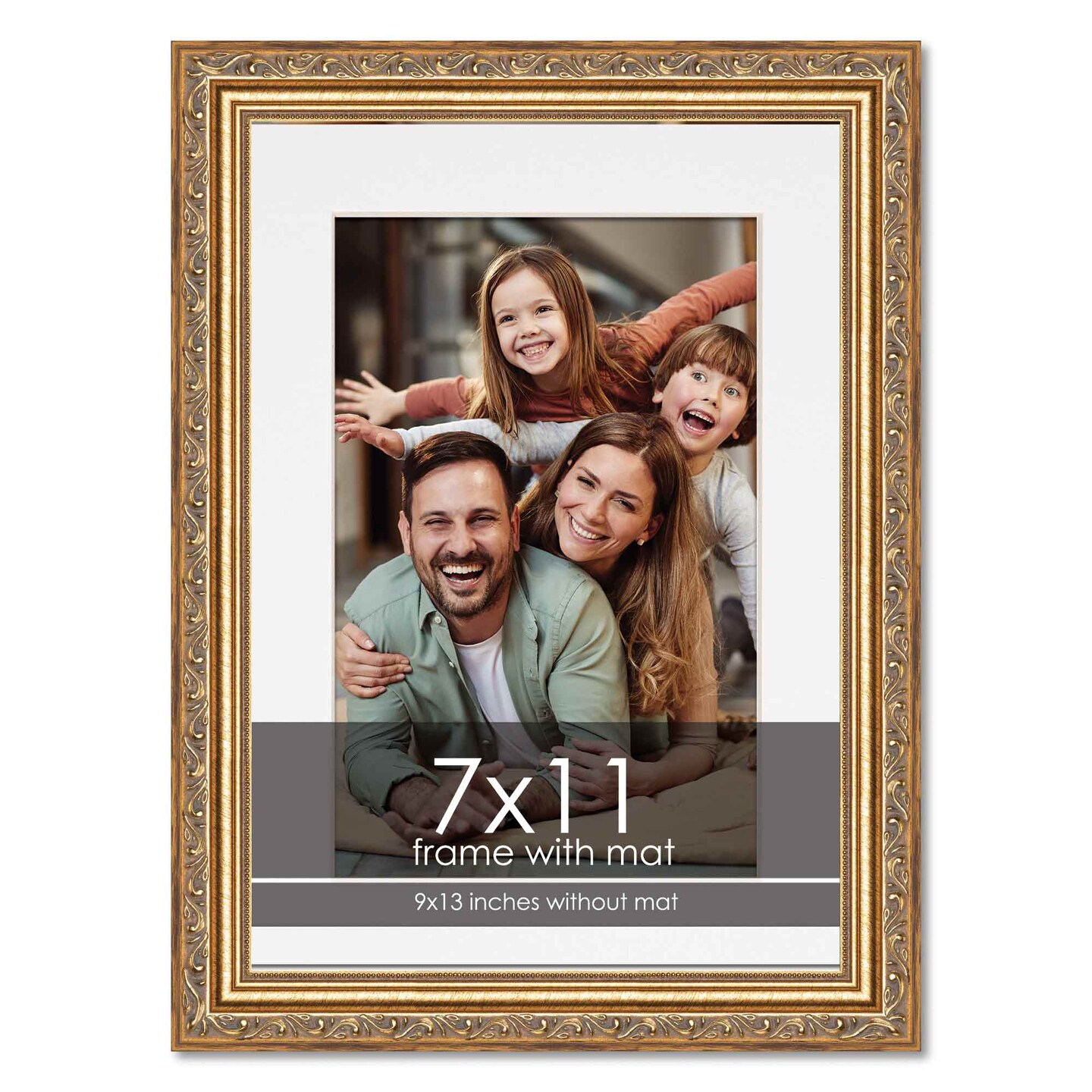 Antique Gold Frame with White Photo Mat, UV Acrylic Front, Foam Board Backing, 60 Sizes Available