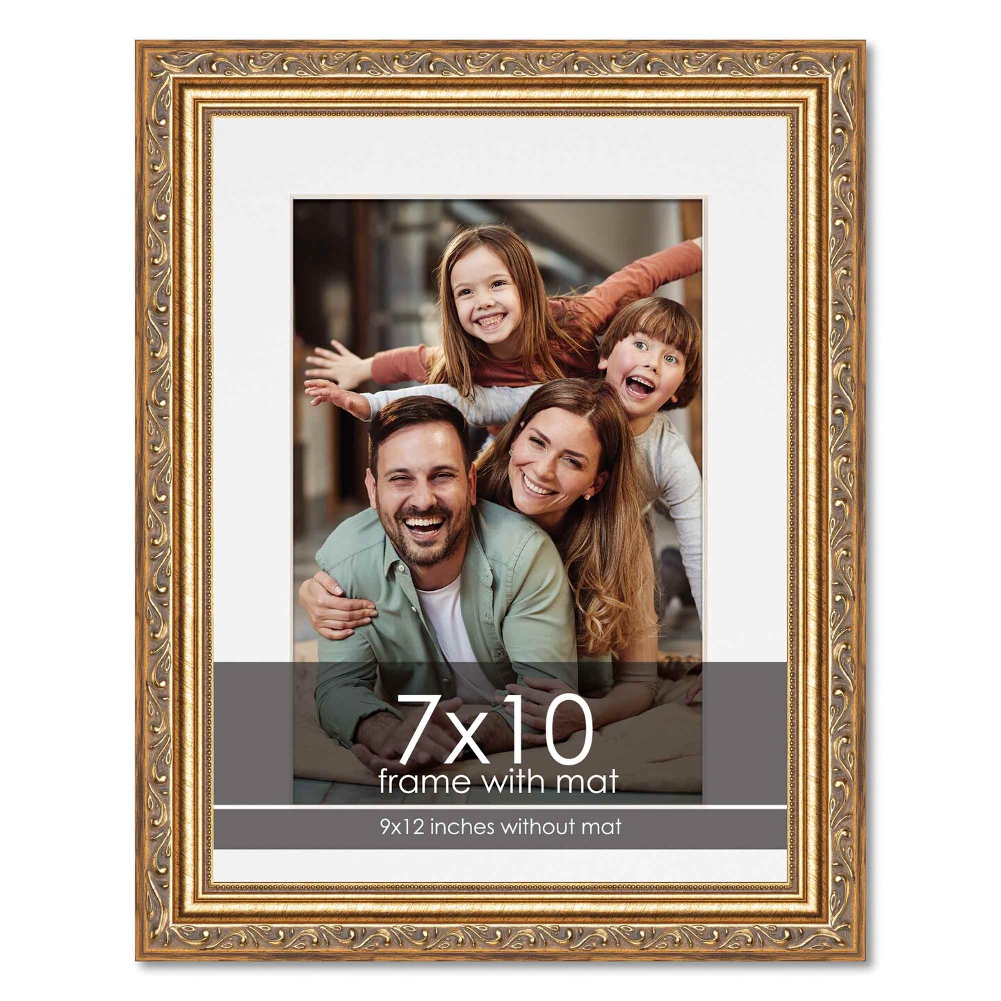 Antique Gold Frame with White Photo Mat, UV Acrylic Front, Foam Board Backing, 60 Sizes Available