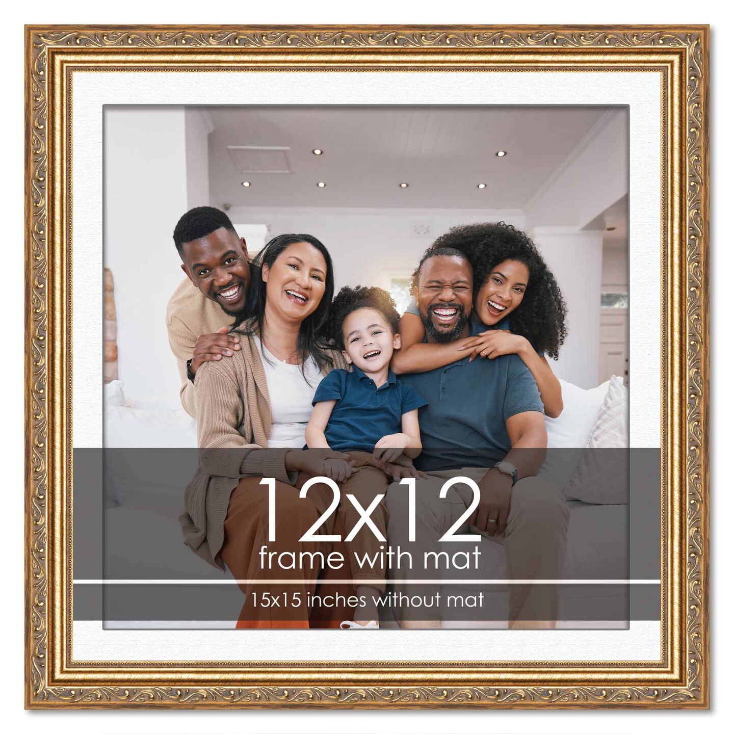 Antique Gold Frame with White Photo Mat, UV Acrylic Front, Foam Board Backing, 60 Sizes Available