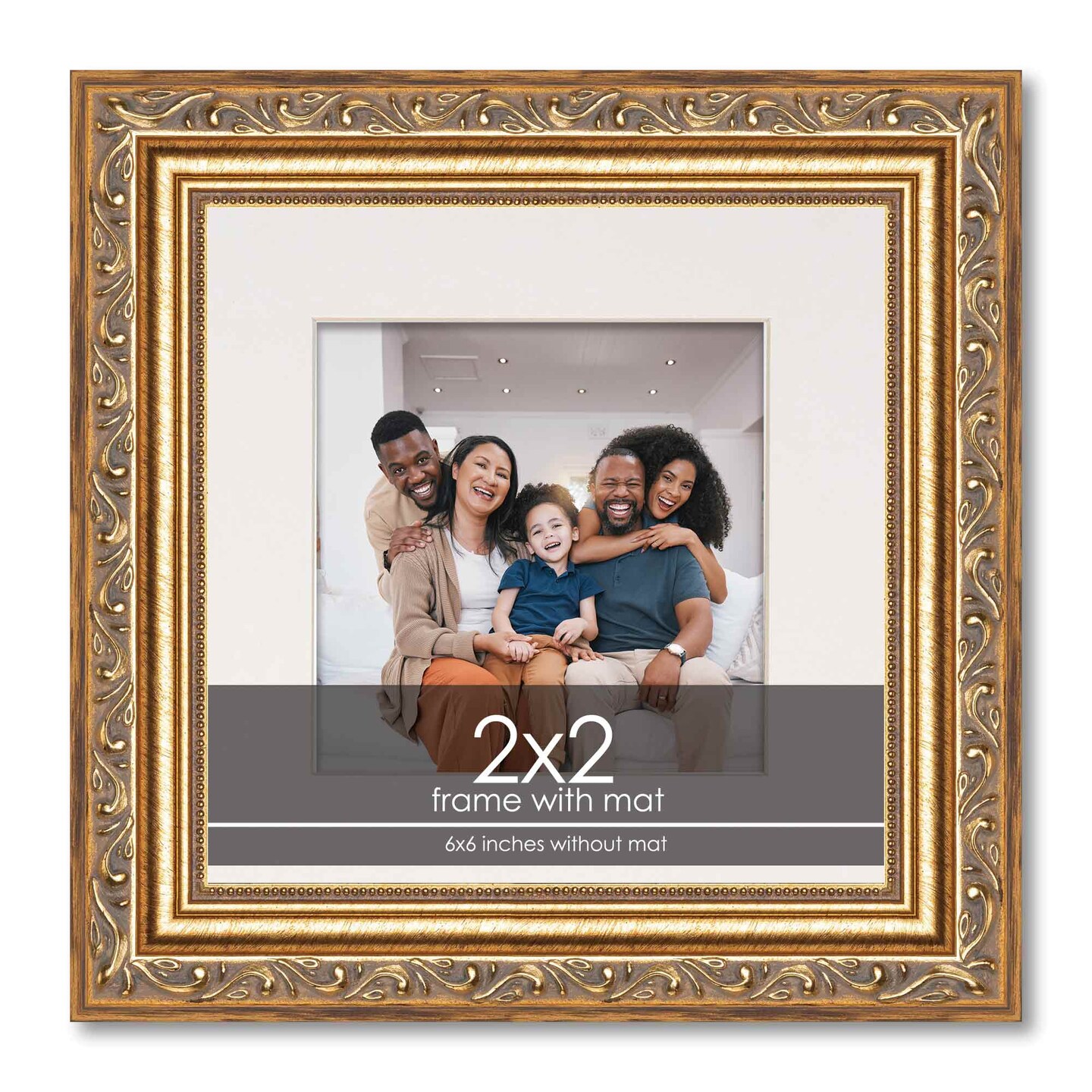 Antique Gold Frame with White Photo Mat, UV Acrylic Front, Foam Board Backing, 60 Sizes Available