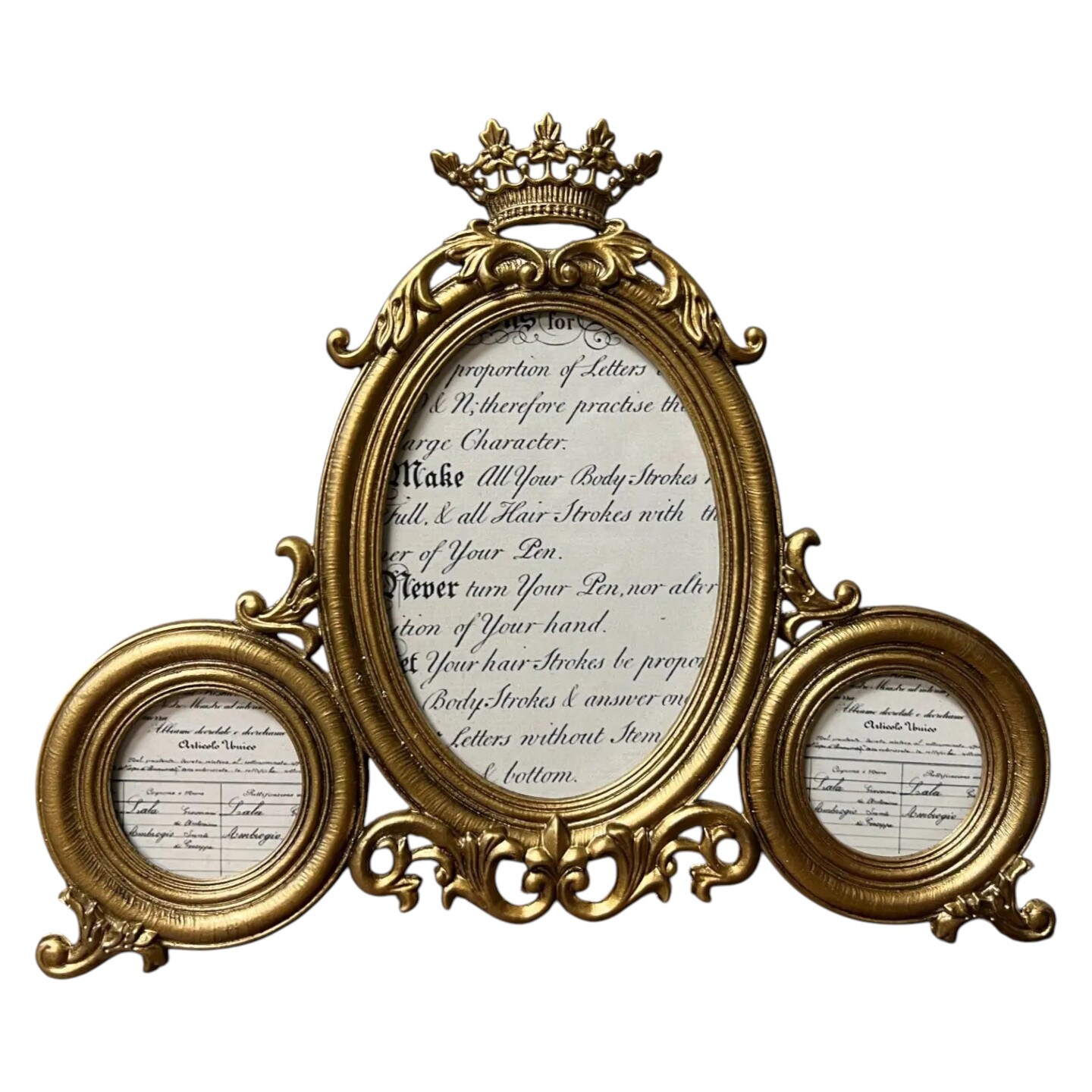 Antique Gold Metal Crown Triple Photo Frame for Multiple Pictures Home Decor