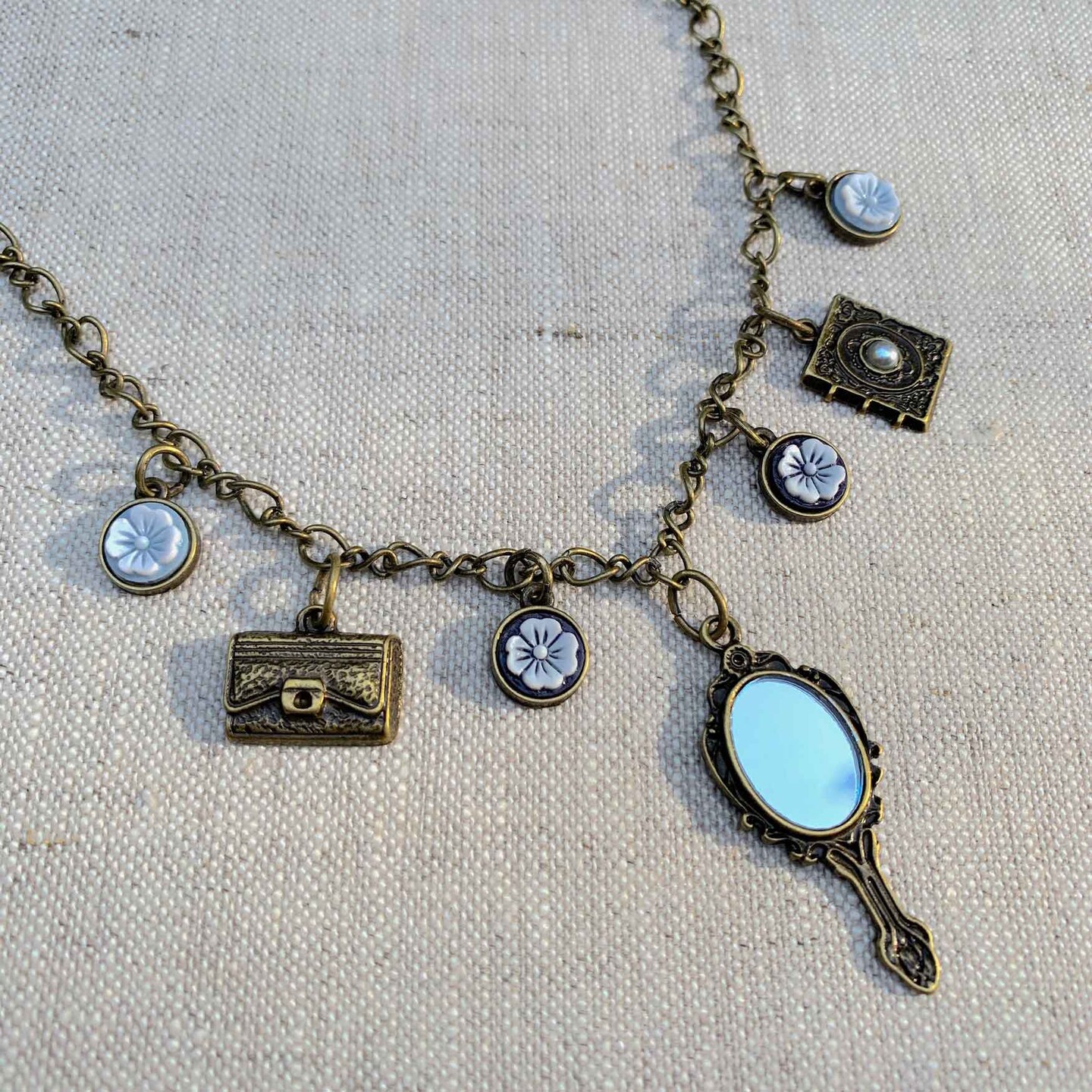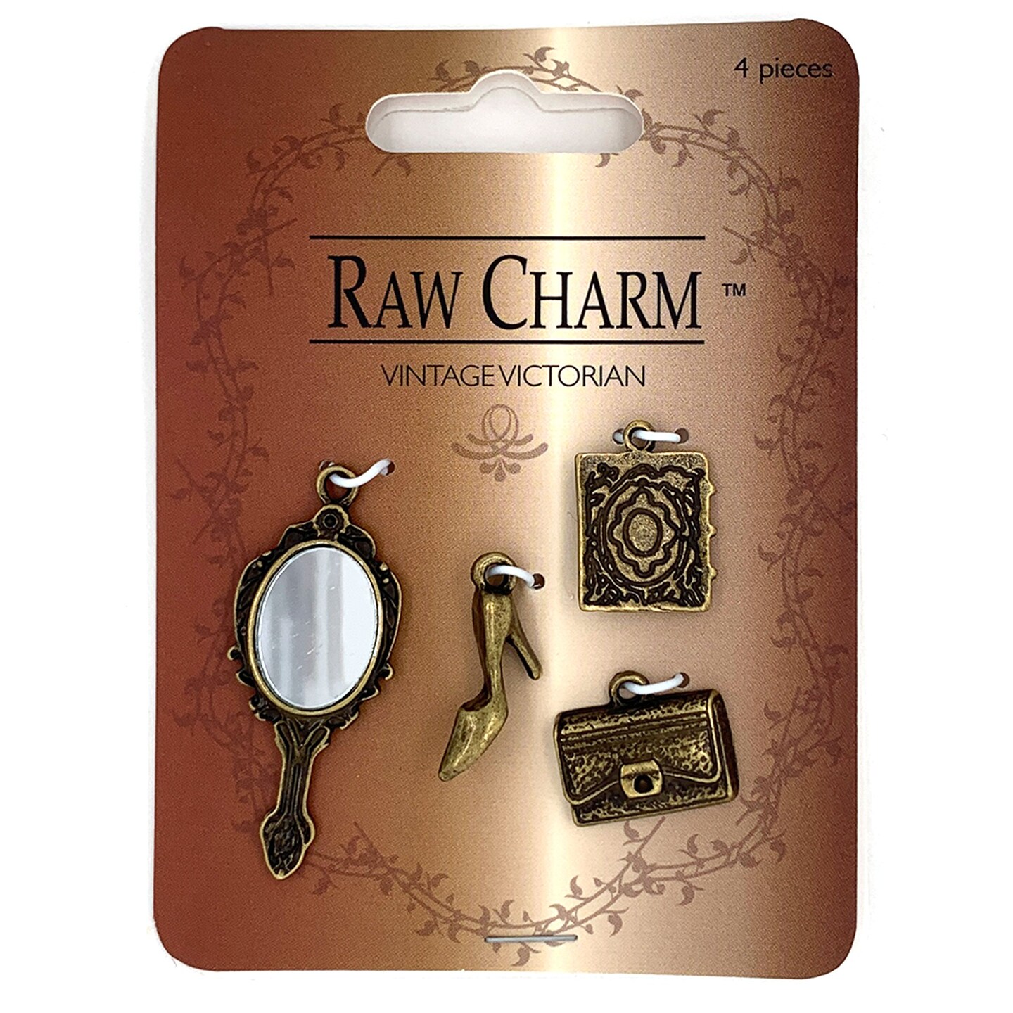Antique Gold Mirror, Shoe, Purse and Journal 4pc Vintage Charms Set