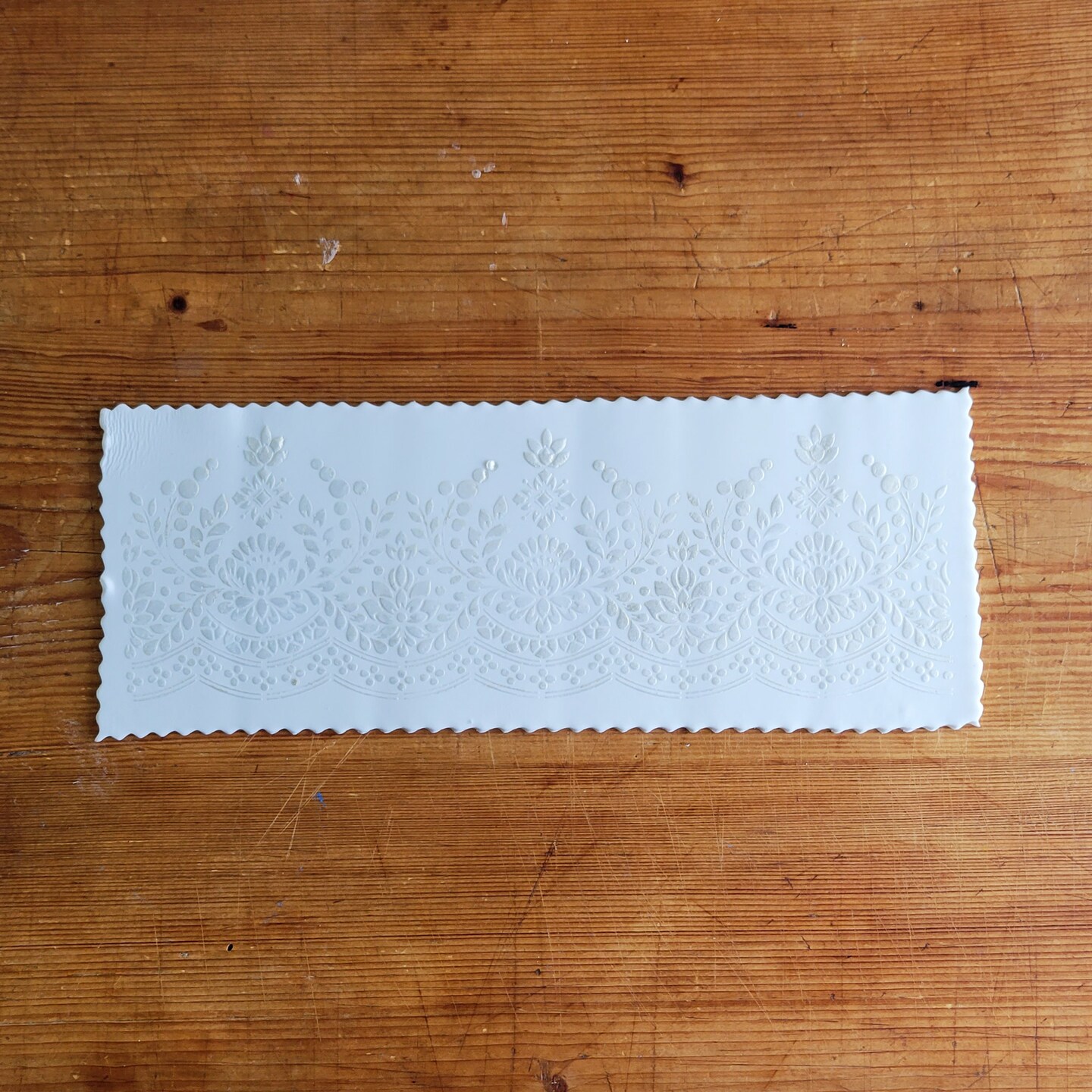 Antique Lace Cake Side Stencil | C1075 by Designer Stencils | Cake Decorating Tools | Baking Stencils for Royal Icing, Airbrush, Dusting Powder | Reusable Plastic Food Grade Stencil for Cakes | Easy to Use & Clean Cake Stencil