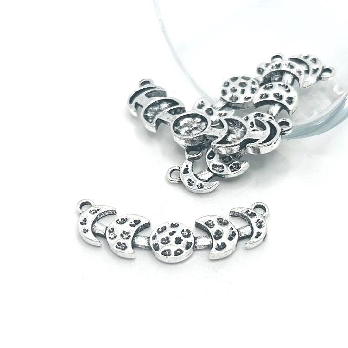Antique Silver Moon Phases Connector Charms, 6x31mm