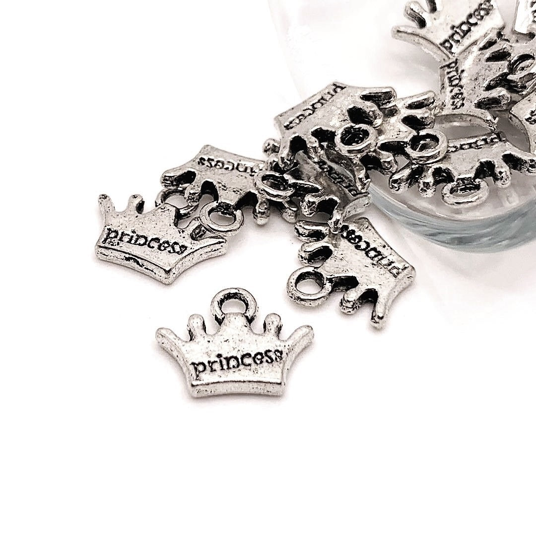 Antique Silver Princess Crown Charms, 10x13mm