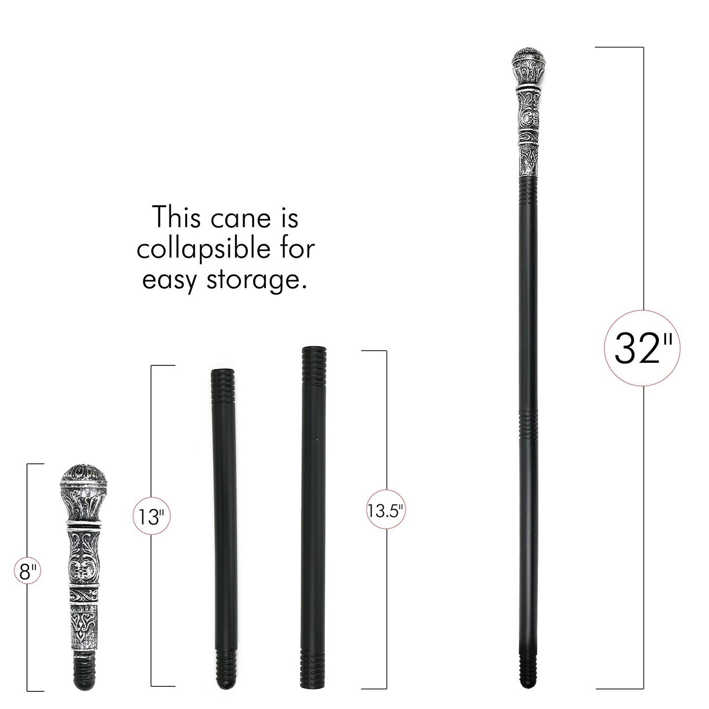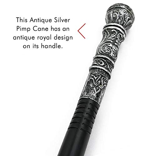 Antique Silver Walking Cane - Elegant Vintage Prop Stick Dress Canes Costume Accessories for Adults and Kids