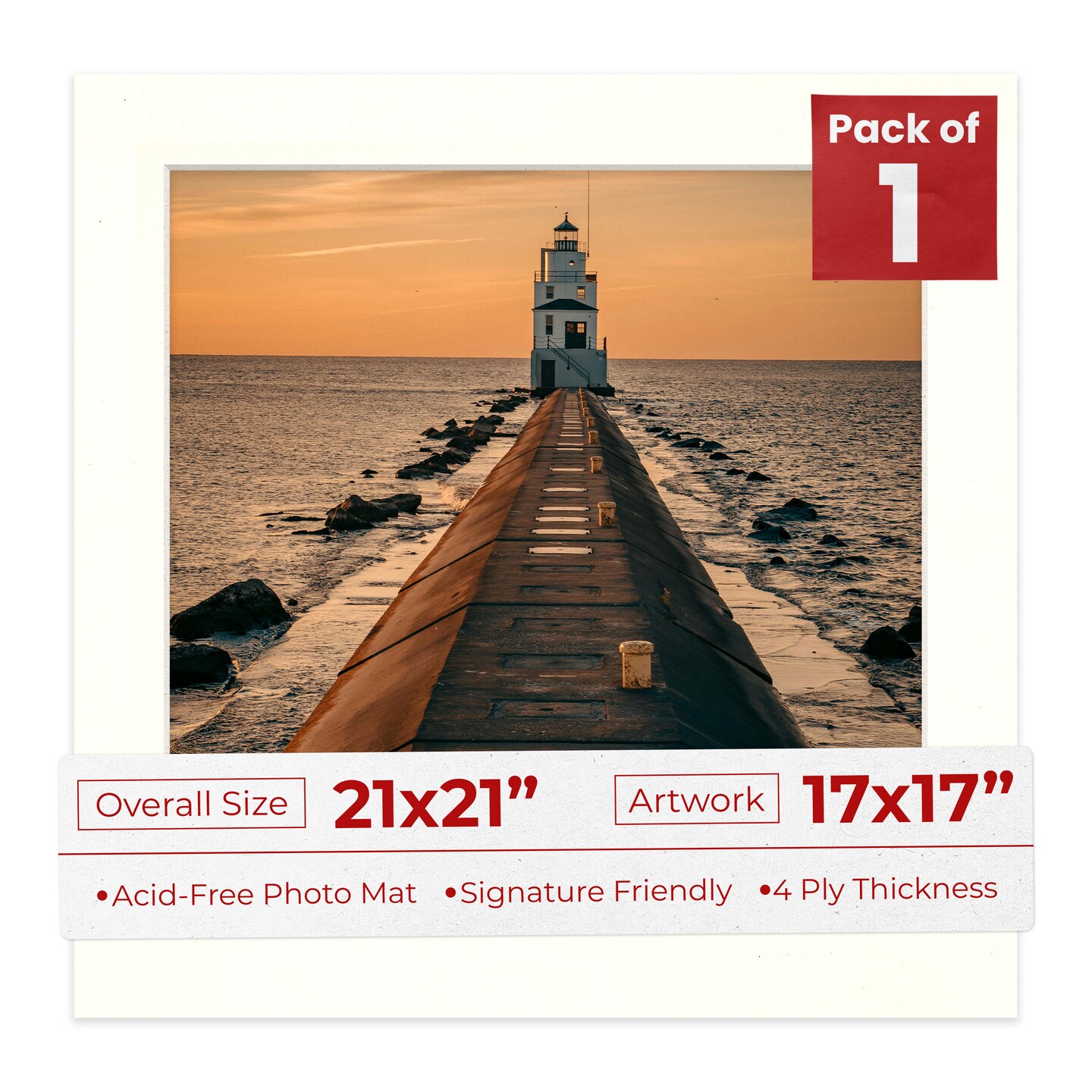 Antique White Mat Board for 21x21 Frames - Fits 17x17 Photos