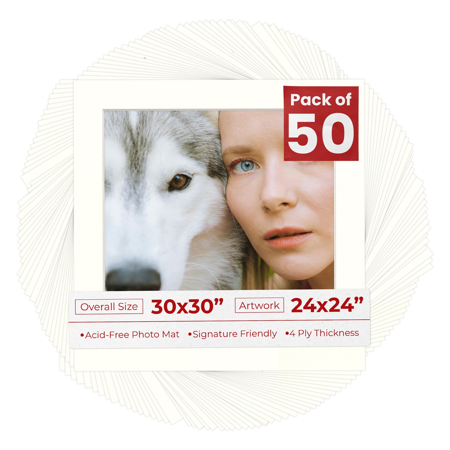 Antique White Mat Board for 30x30 Frames - Fits 24x24 Photos