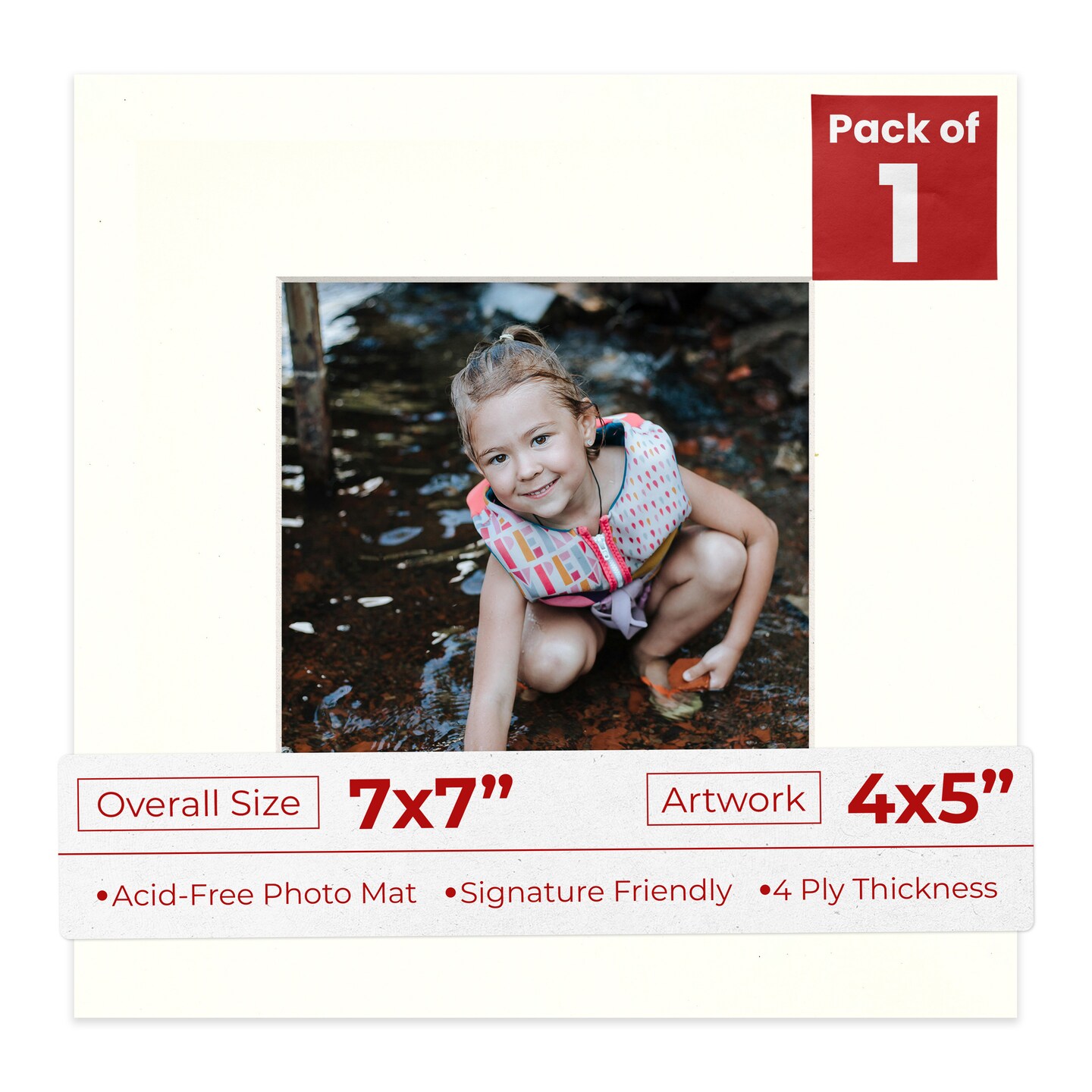 Antique White Mat Board for 7x7 Frames - Fits 4x5 Photos
