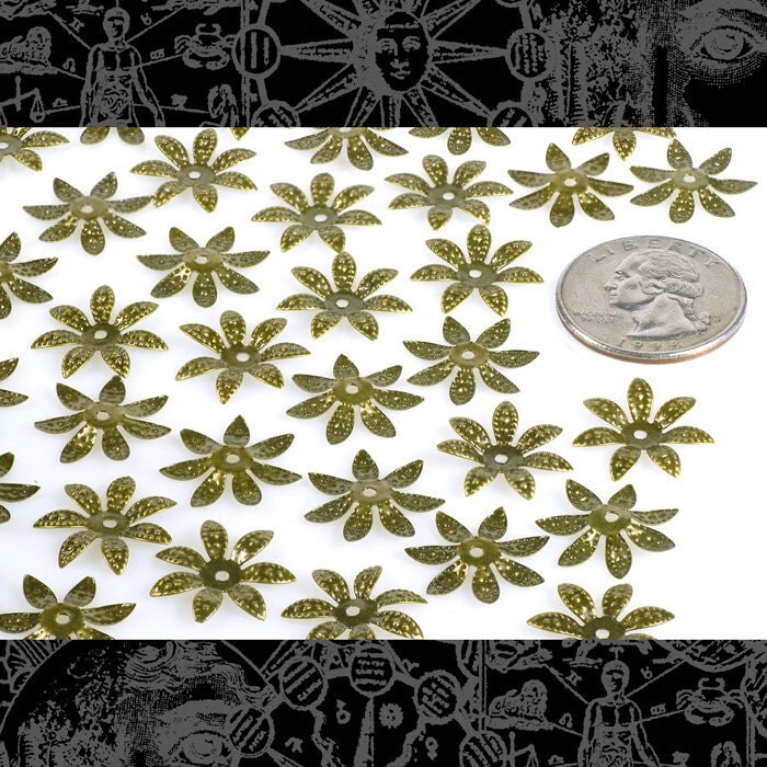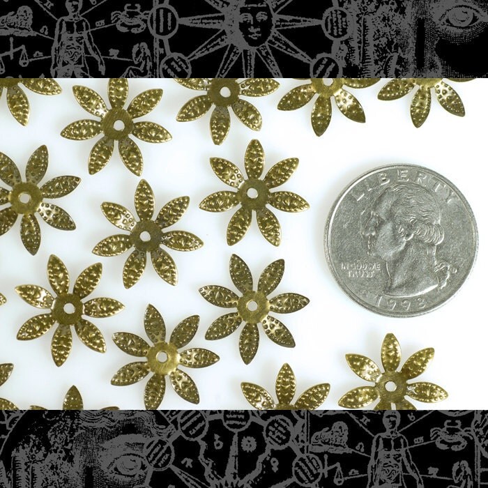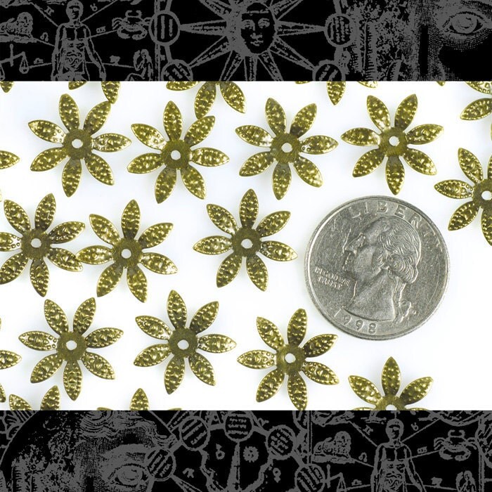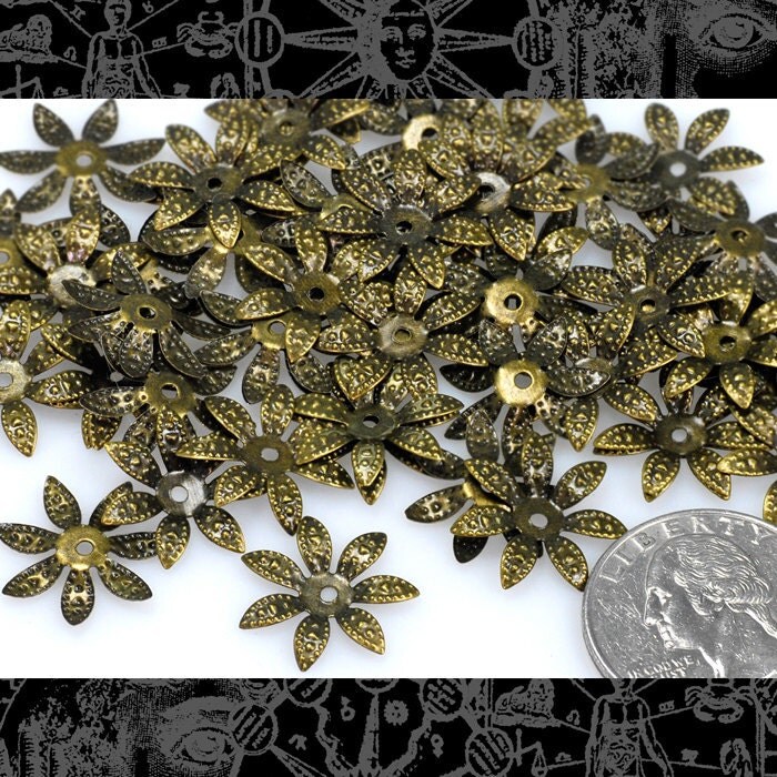Antiqued Brass 17mm Leafy Bead Caps - Set of 50 - AB-BC16