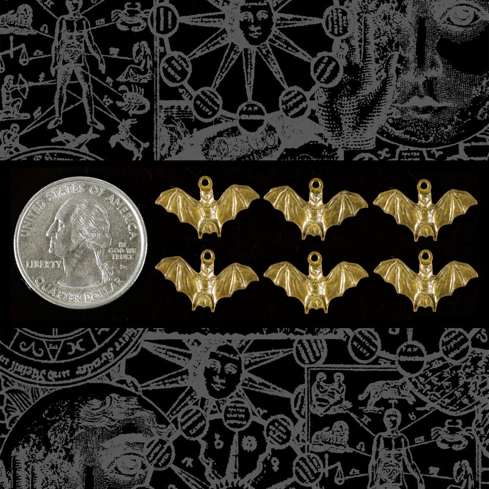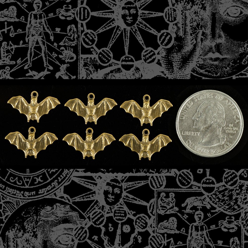 Antiqued Brass Bat Charms - Set of Six - AB-C12