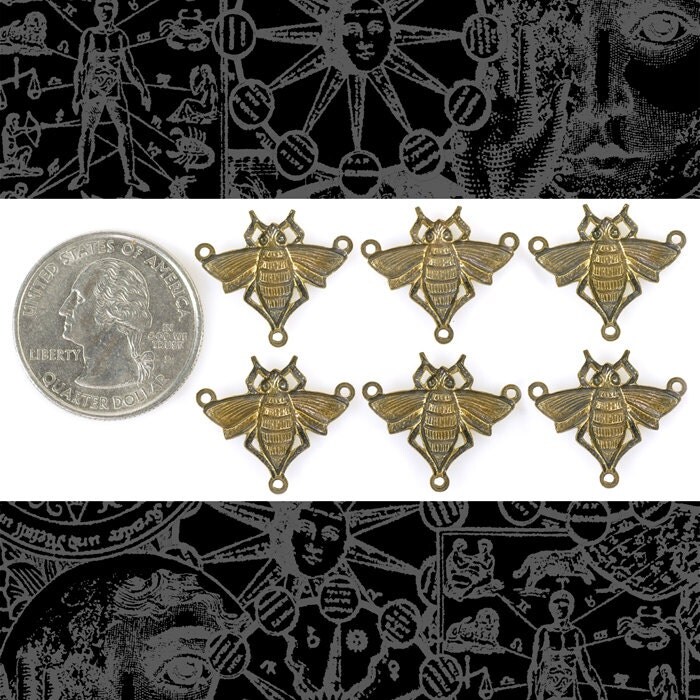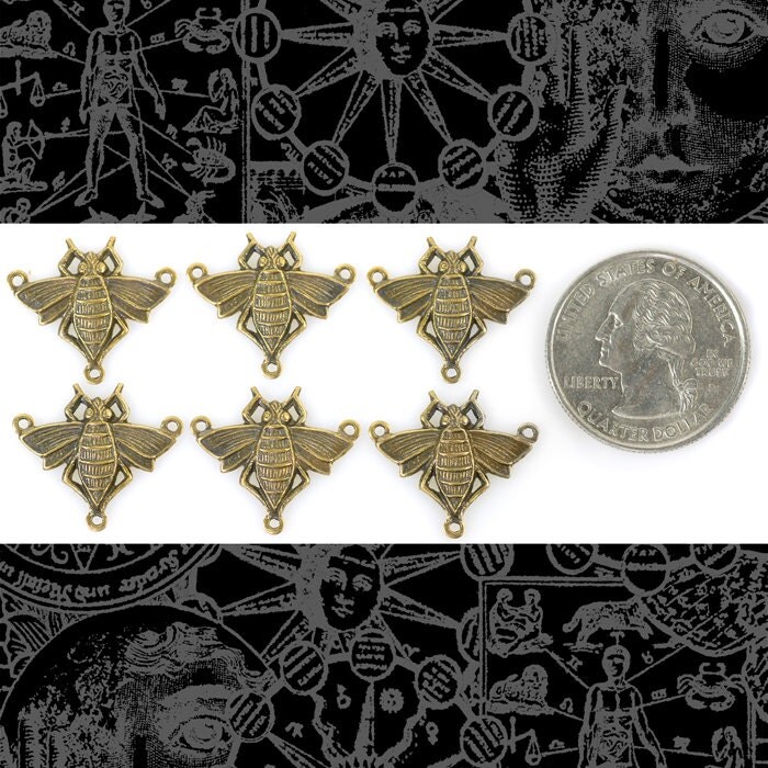 Antiqued Brass Bumble Bee Three Ring Connectors - Set of Six - AB-3C01