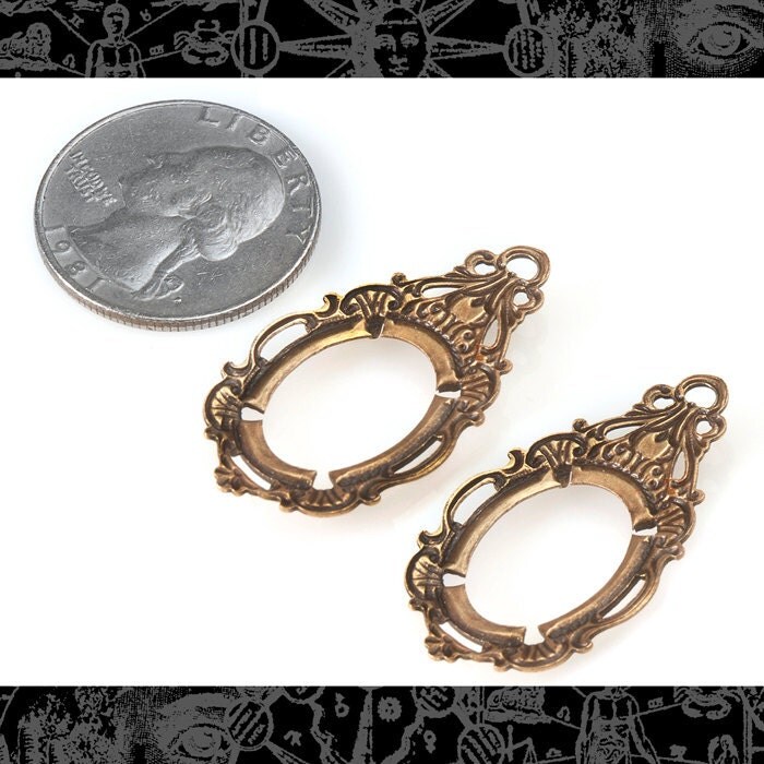 Antiqued Brass Crowned Filigree Cameo Frames for - 13mm x 18mm - Set of Two - AB-F19