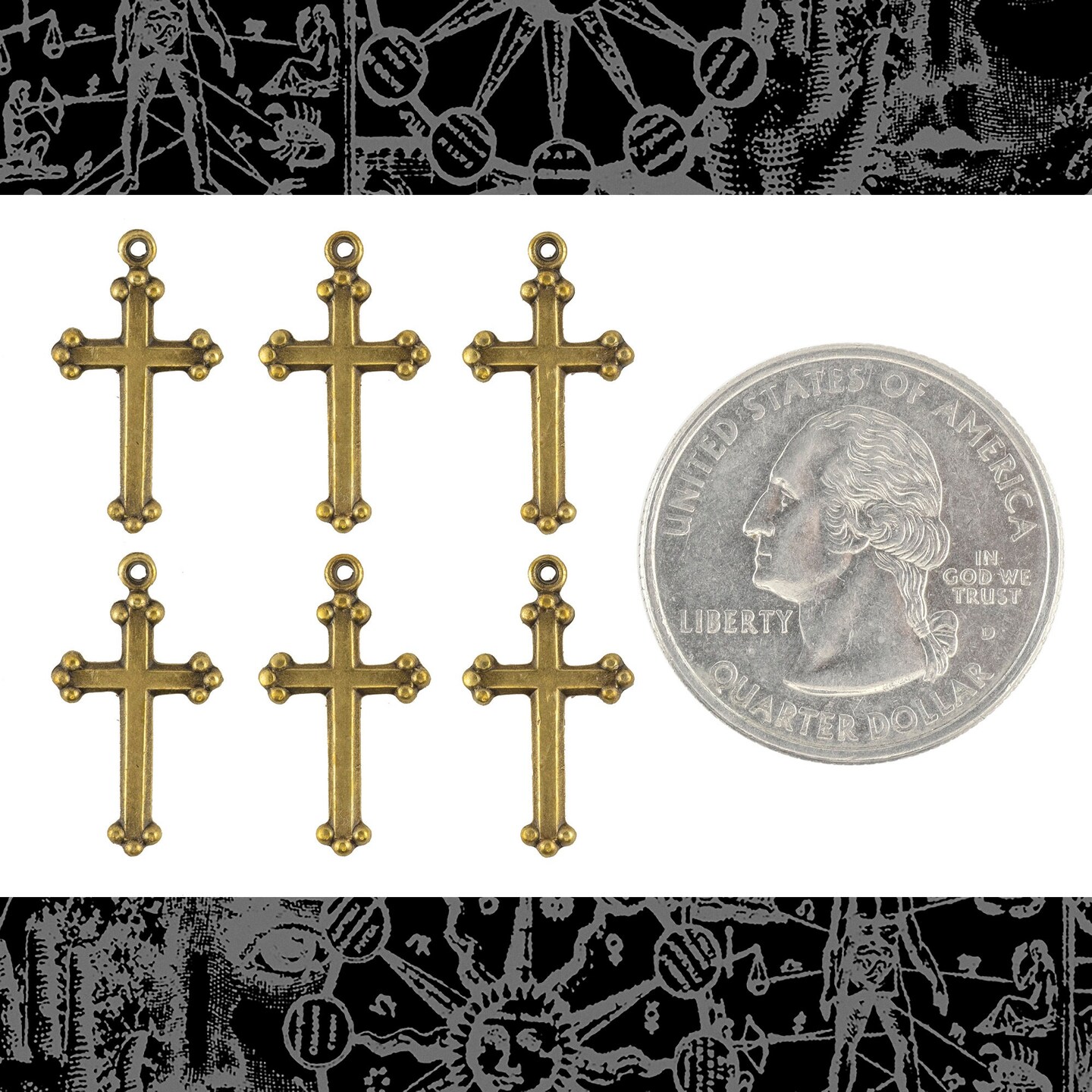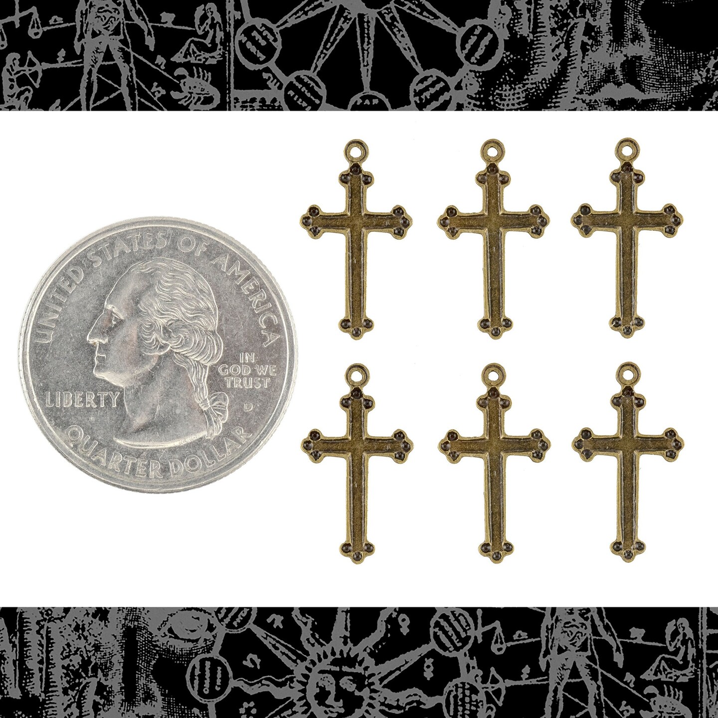 Antiqued Brass Delicate Christian Cross Charms - Set of Six - AB-C83