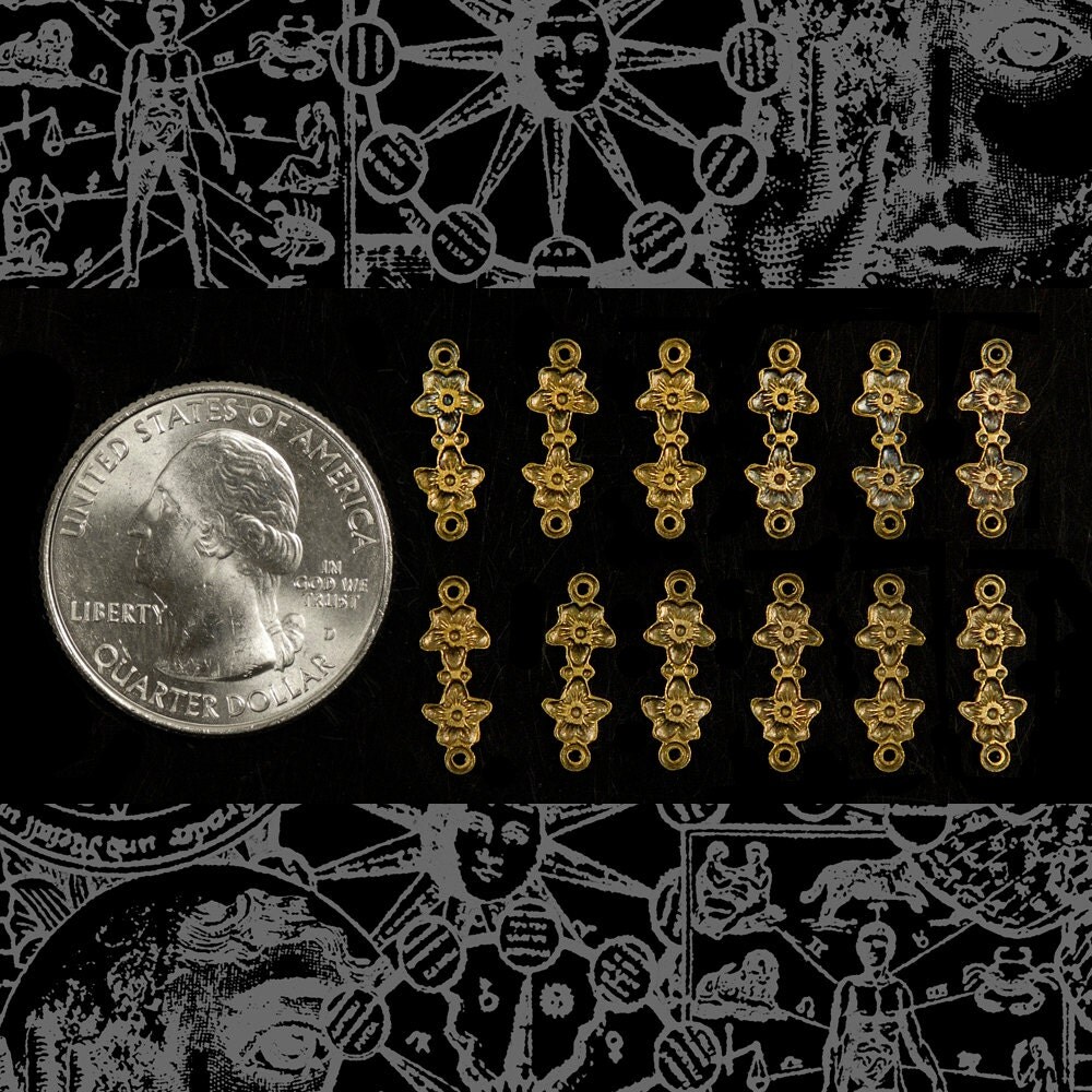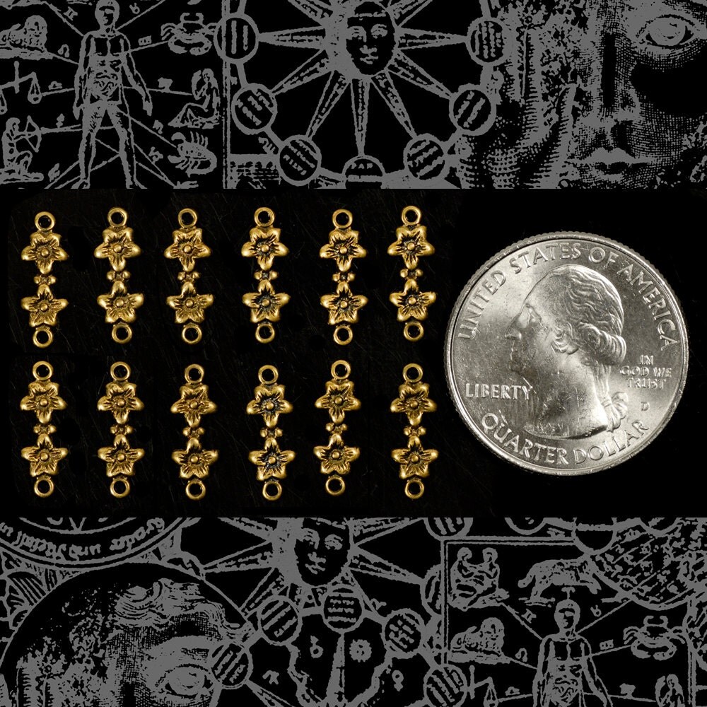 Antiqued Brass Delicate Floral Two Ring Connectors - Set of Twelve - AB-2C44