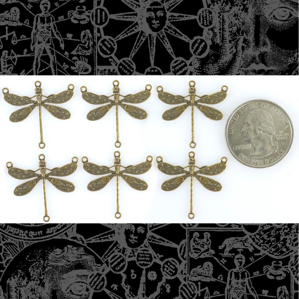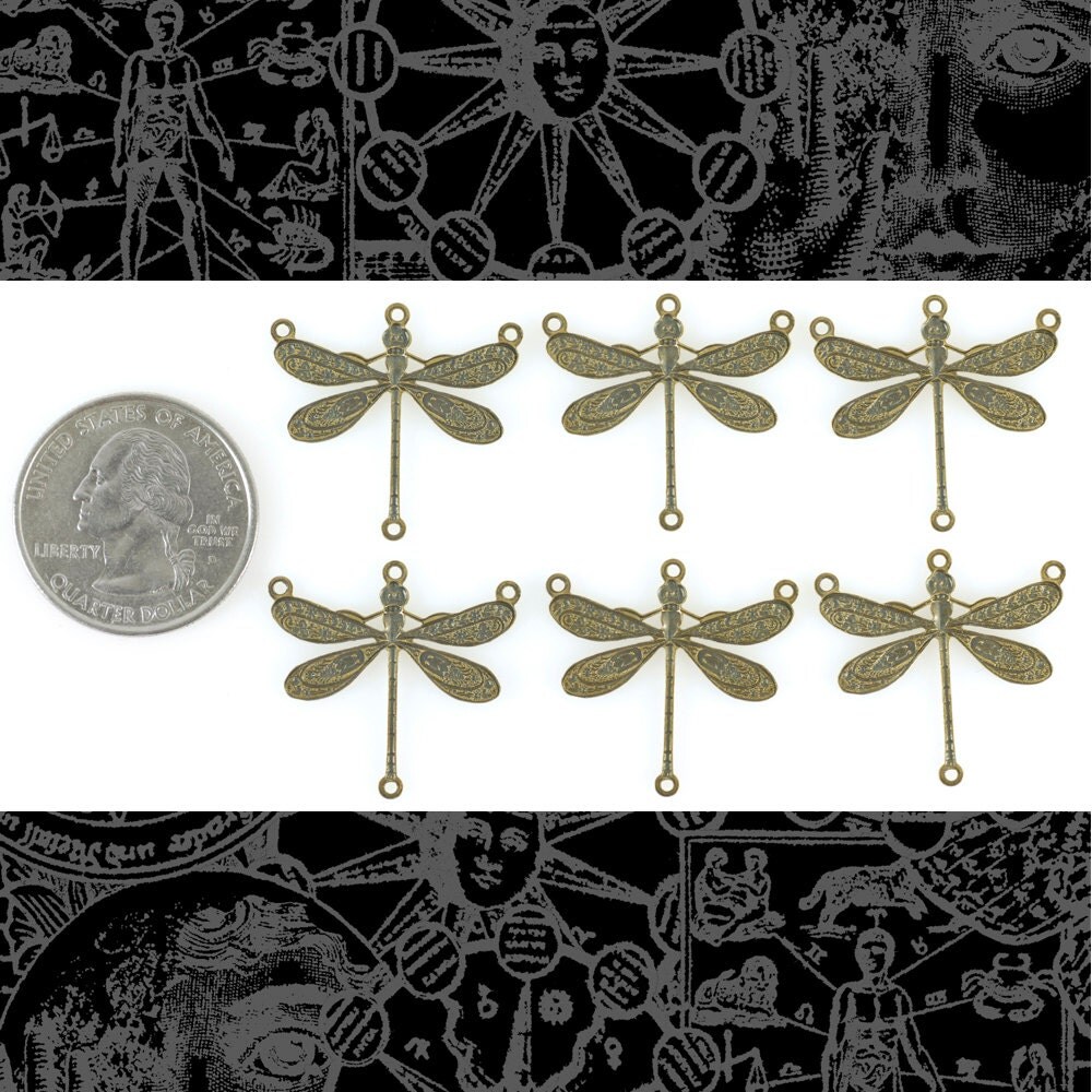 Antiqued Brass Dragonfly Four Ring Connectors - Set of Six - AB-4C06
