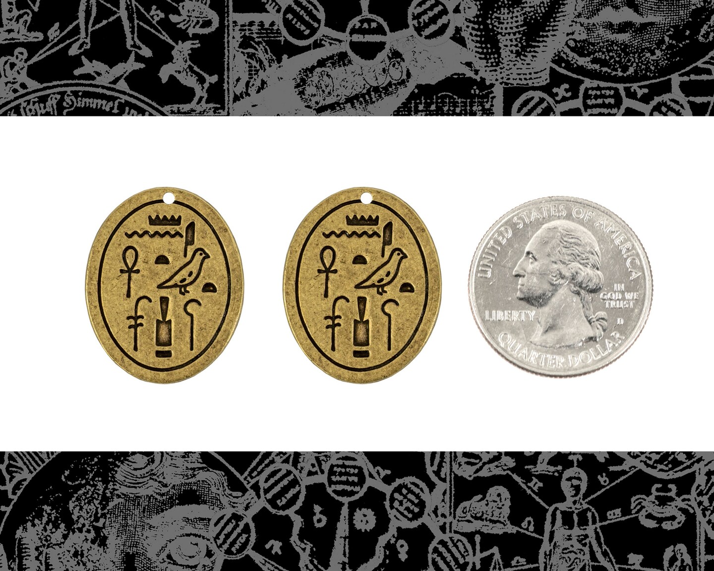 Antiqued Brass Egyptian Hieroglyph Pendants - Set of Two - AB-P122