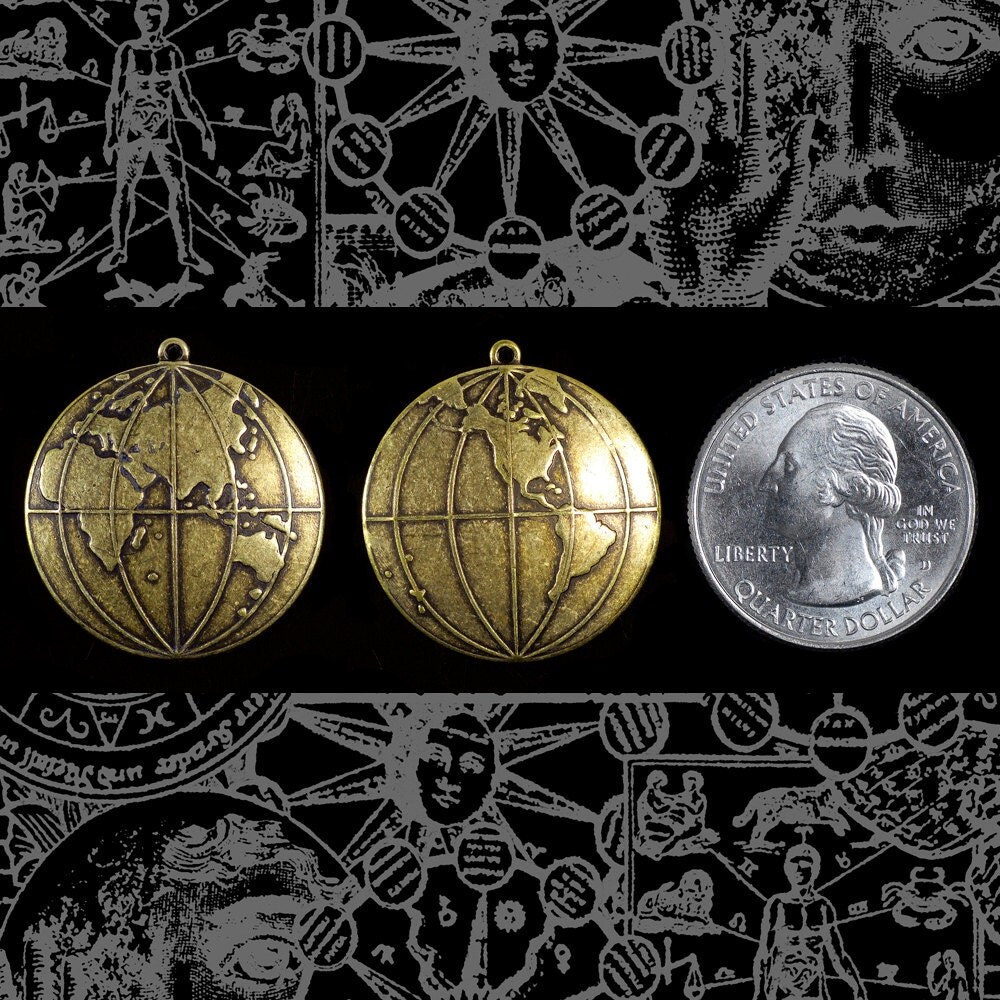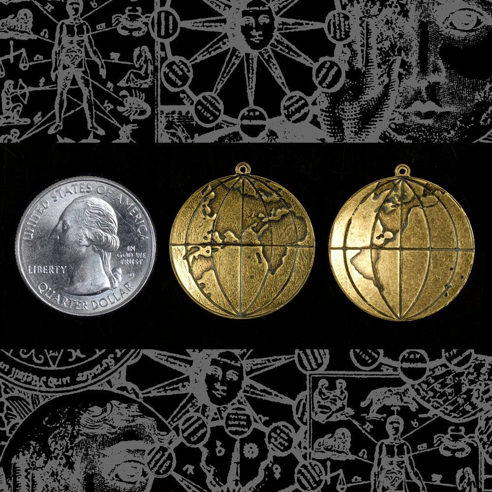 Antiqued Brass Globe Charms - Set of Two - One of Each Side of Globe - AB-C160