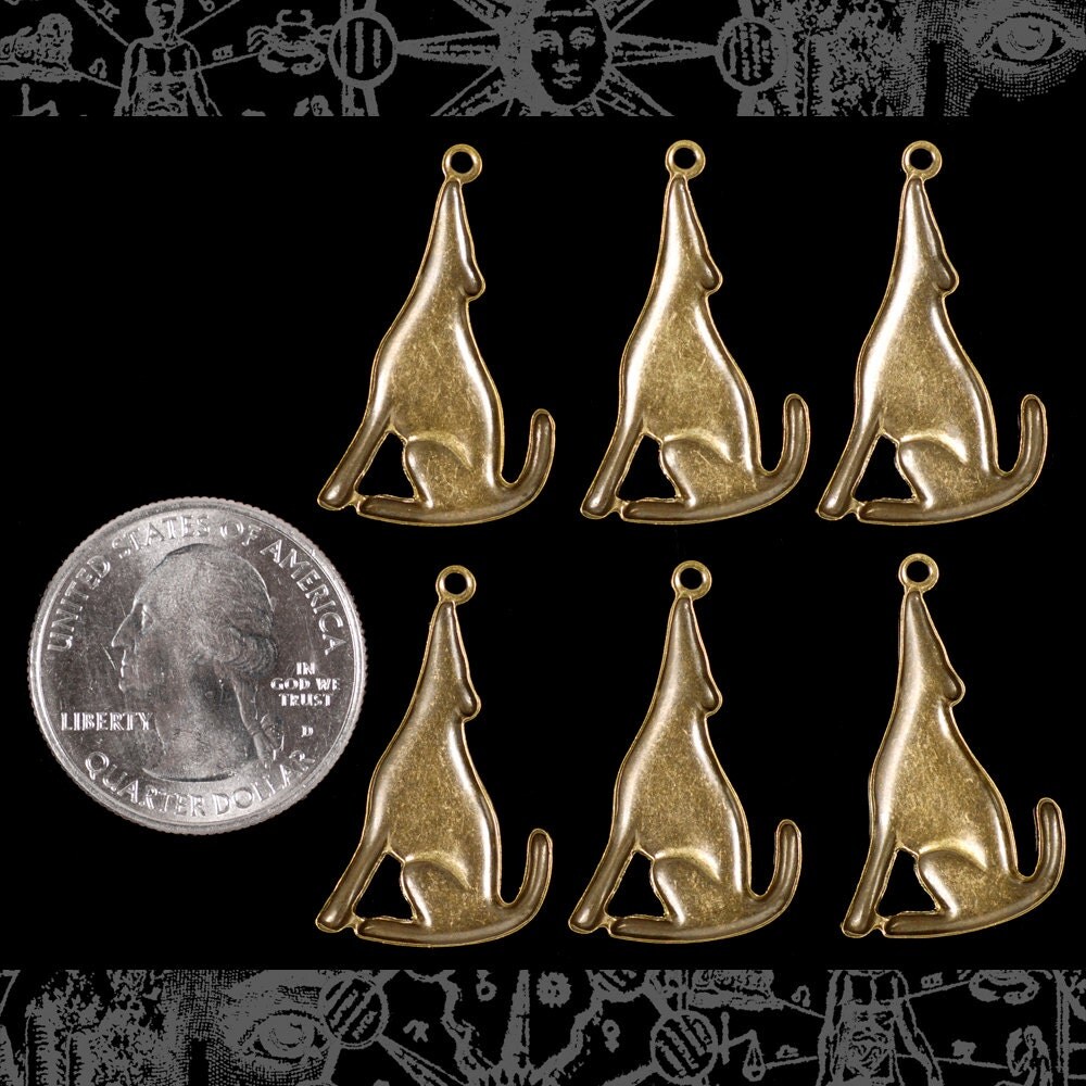 Antiqued Brass Howling Coyote or Wolf Charms - Set of Six - AB-C139