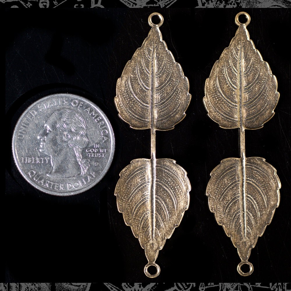 Antiqued Brass Large Leaf Pinch Connector - Set of Two - AB-W19