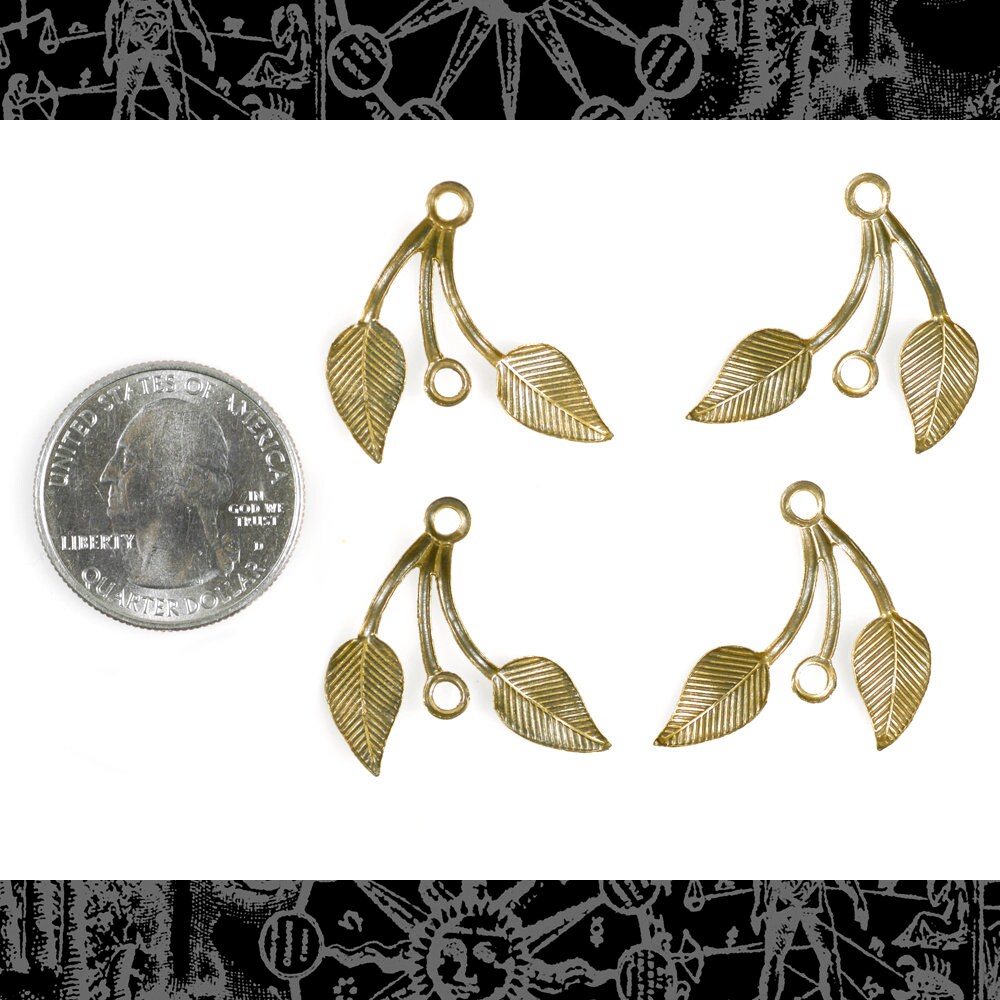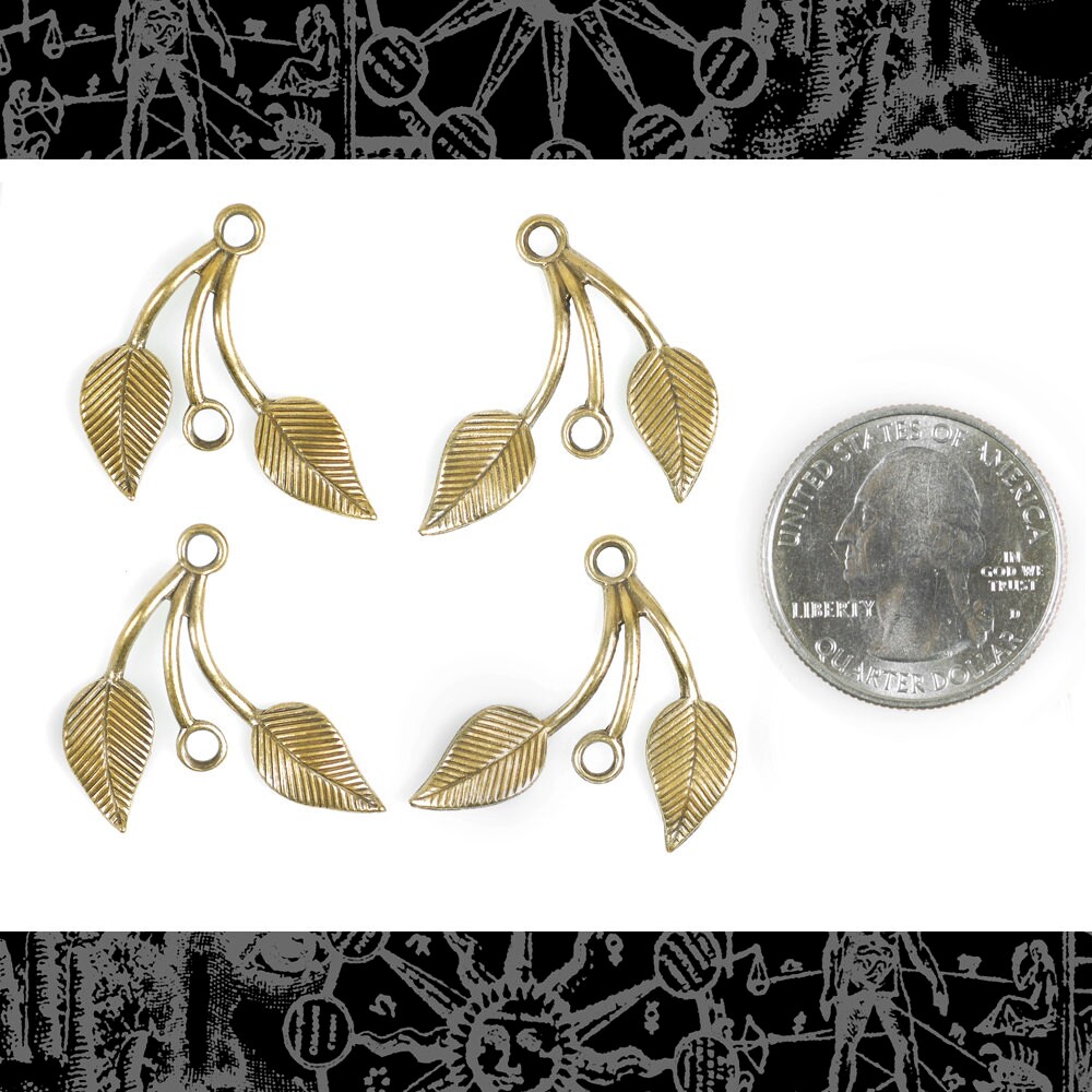 Antiqued Brass Leaf Mirror Image Connectors - 25mm x 27mm - Set of Two Pairs - AB-2C01