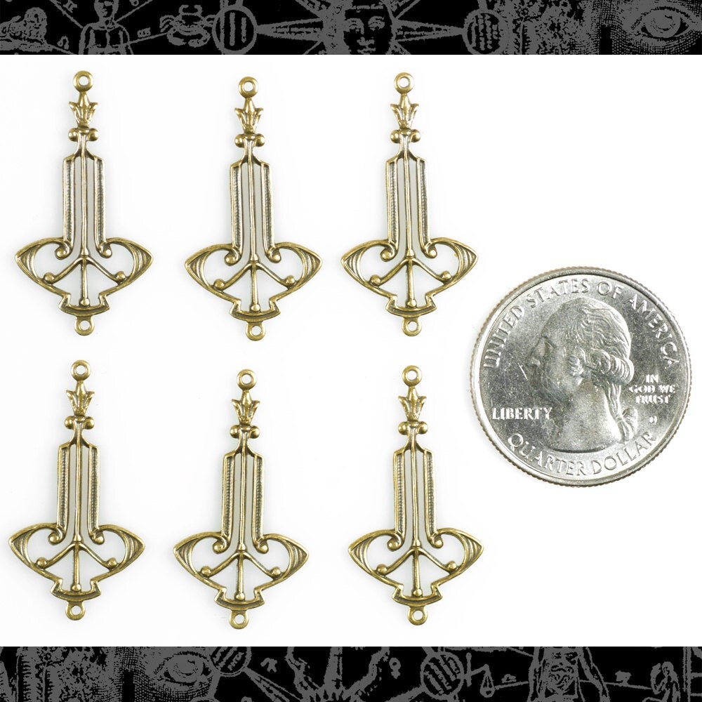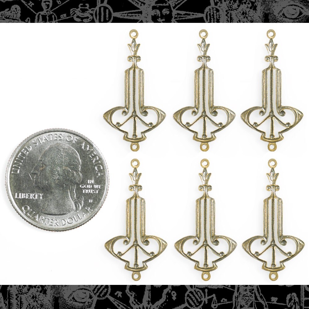 Antiqued Brass Long Delicate Filigree Two Ring Connectors - Set of Six - AB-2C59