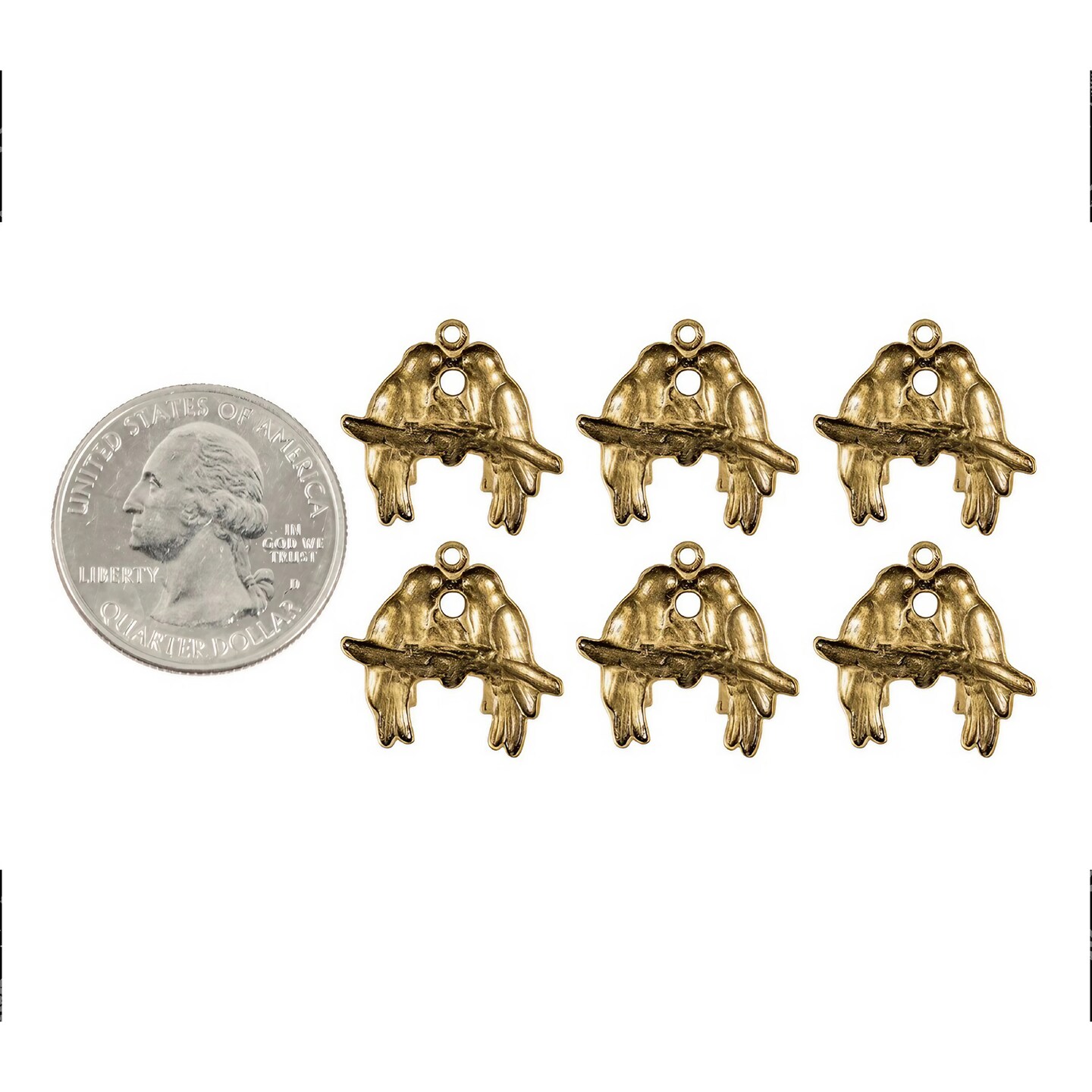 Antiqued Brass Medium Love Bird Charms - Set of Six - AB-C199