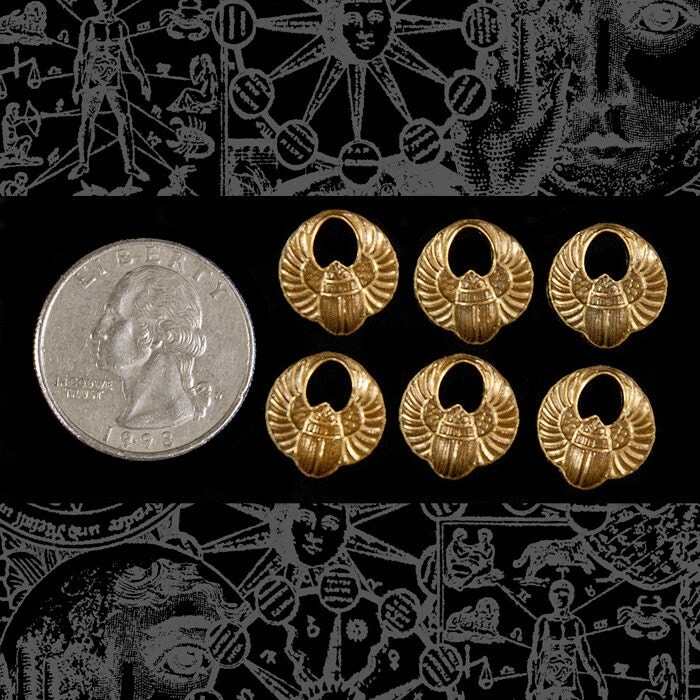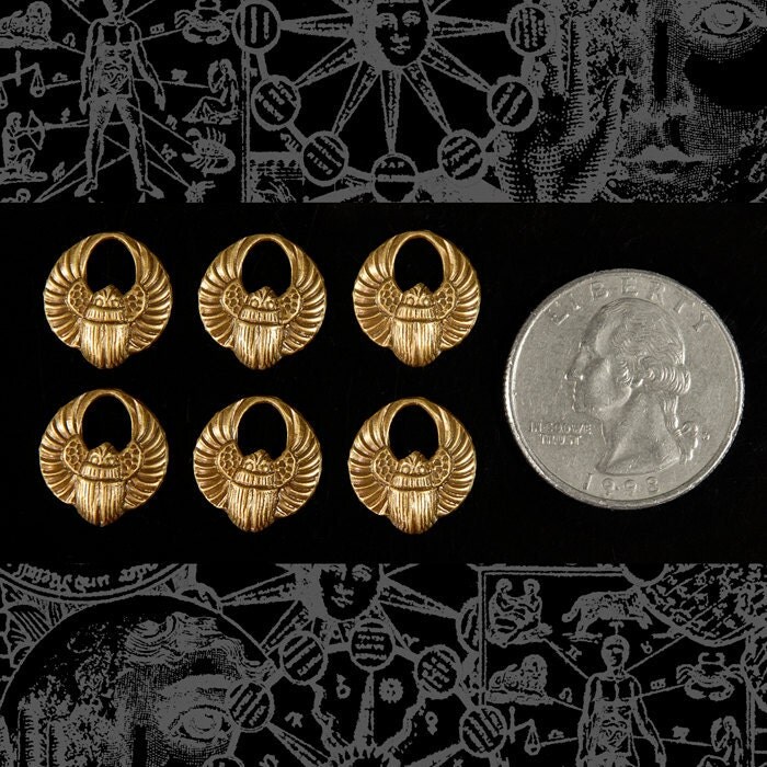 Antiqued Brass Mini Scarab Charms - Set of Six - AB-C32