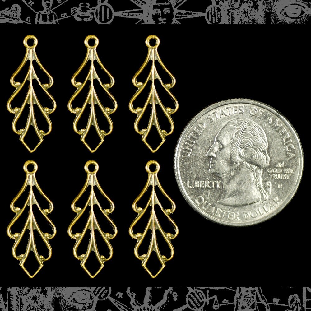 Antiqued Brass Multi Hole Leaf Connectors - Set of Six - AB-2C28