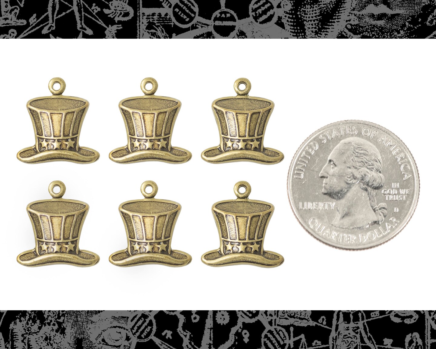 Antiqued Brass Patriotic Top Hat Charms - Set of Six - AB-C224