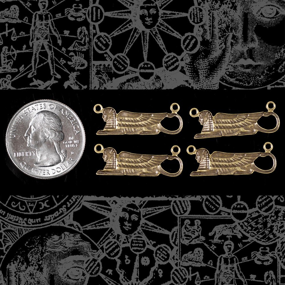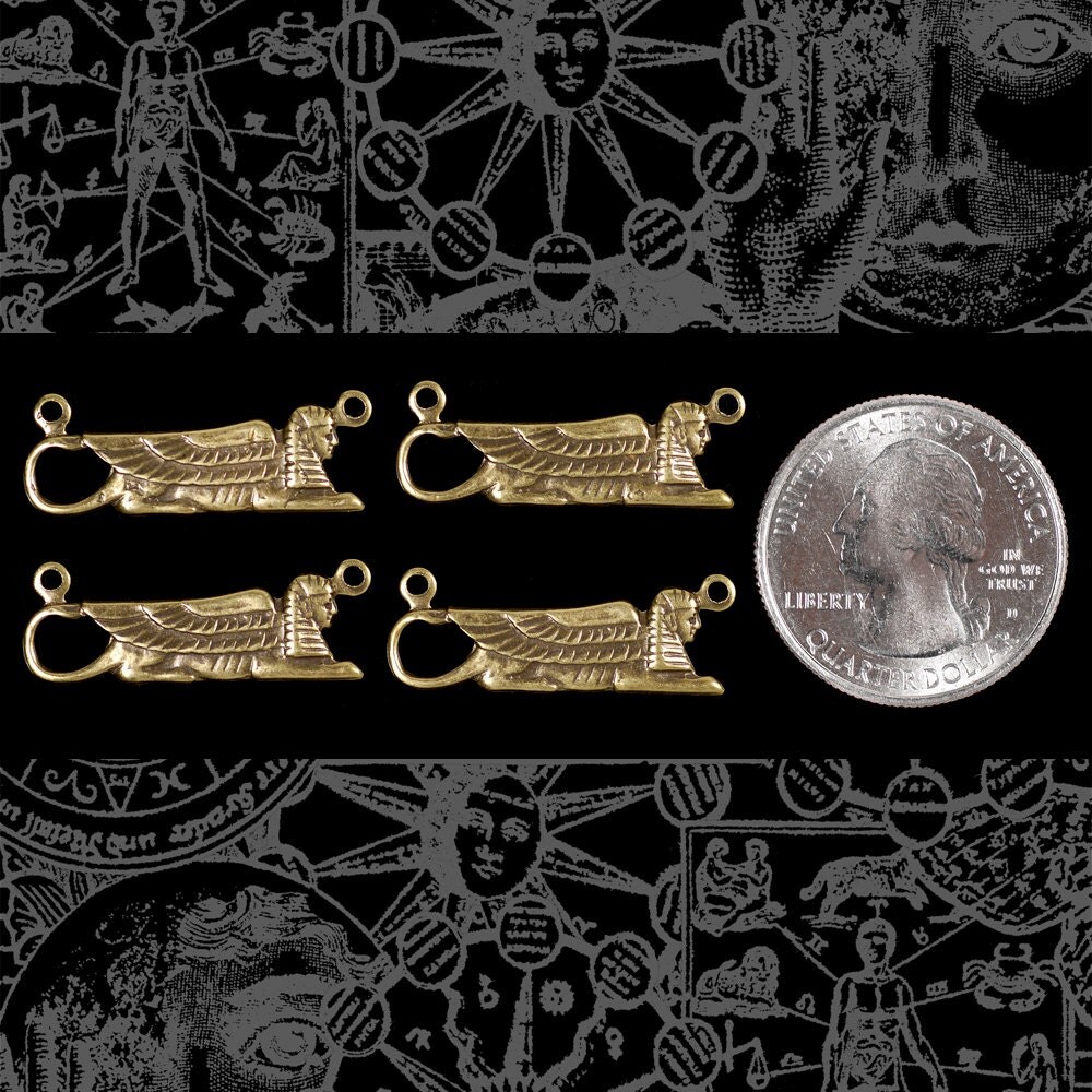 Antiqued Brass Sphinx Two Ring Connectors - Set of Six - AB-2C64