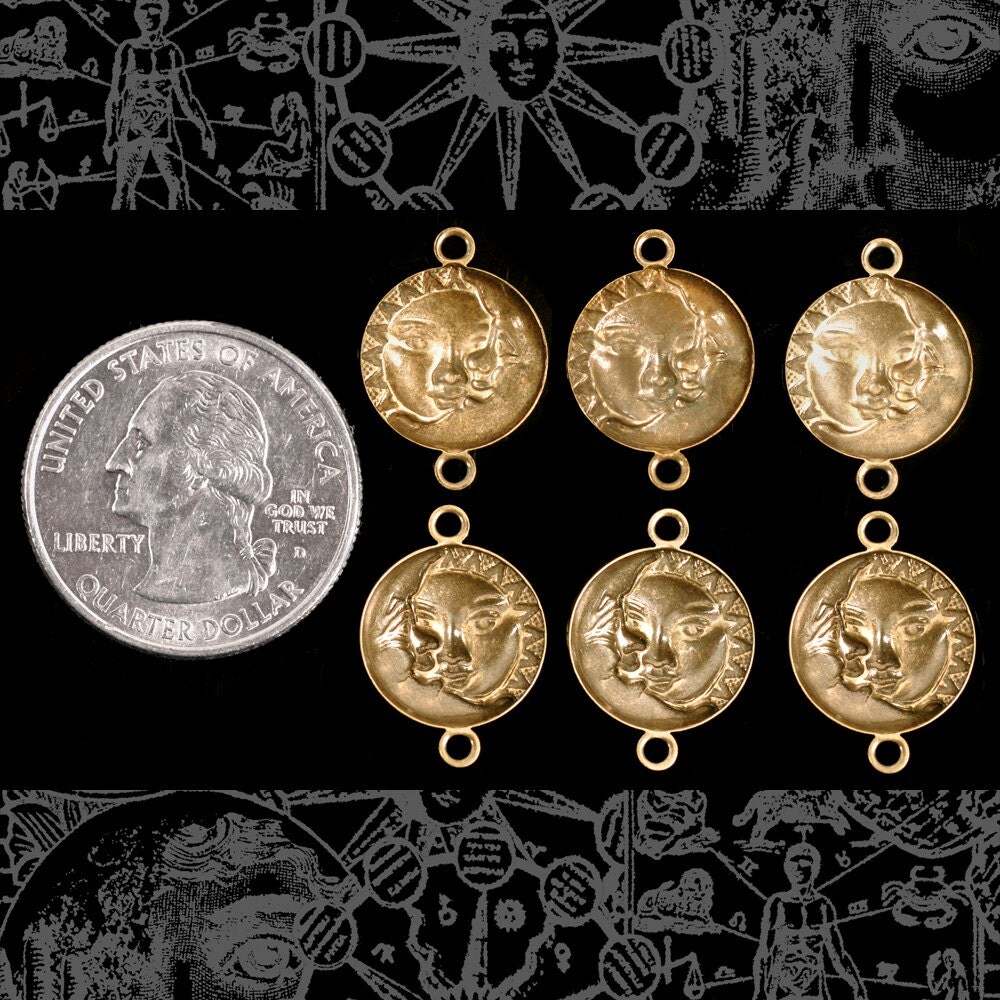 Antiqued Brass Sun and Moon Connectors - Set of Six - AB-2C42