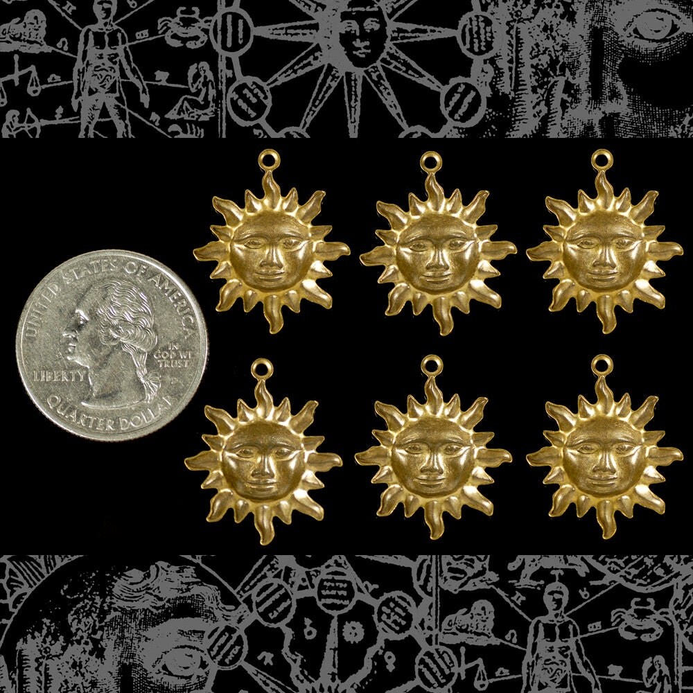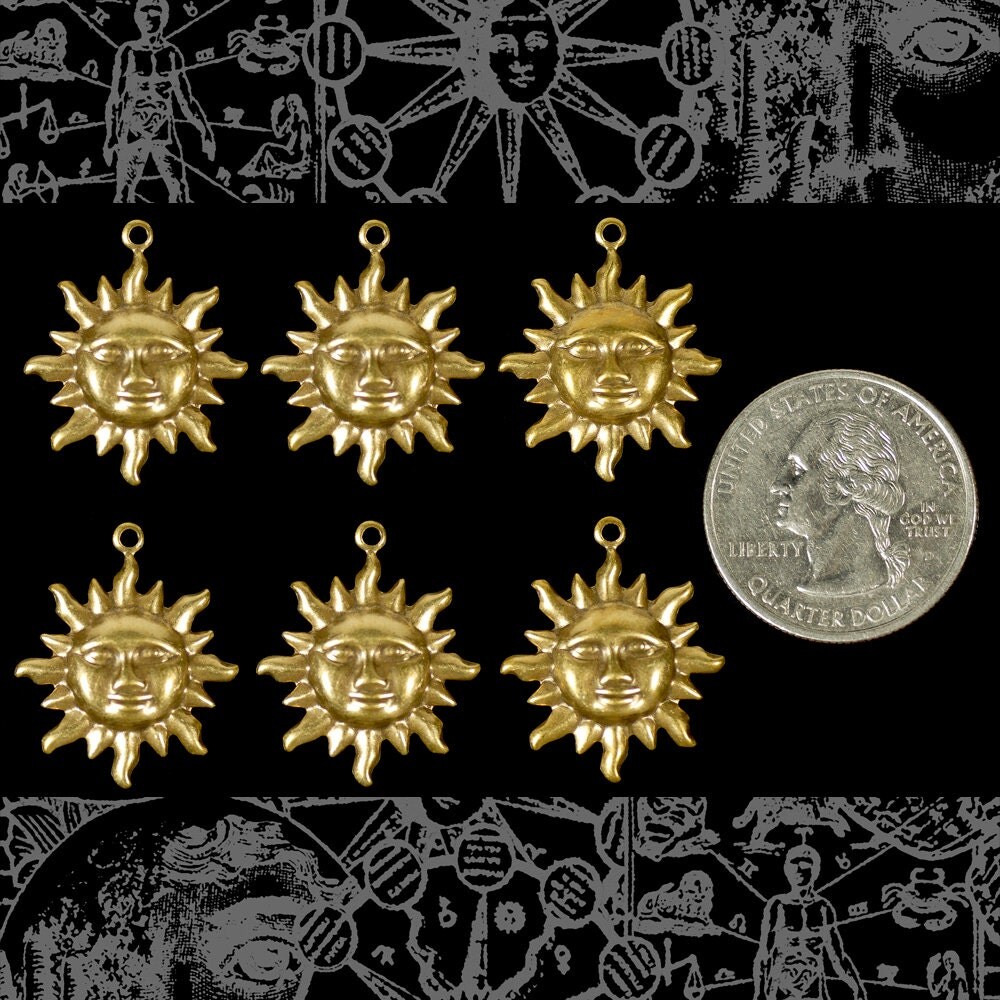 Antiqued Brass Sun Charms - Set of Six - AB-C81