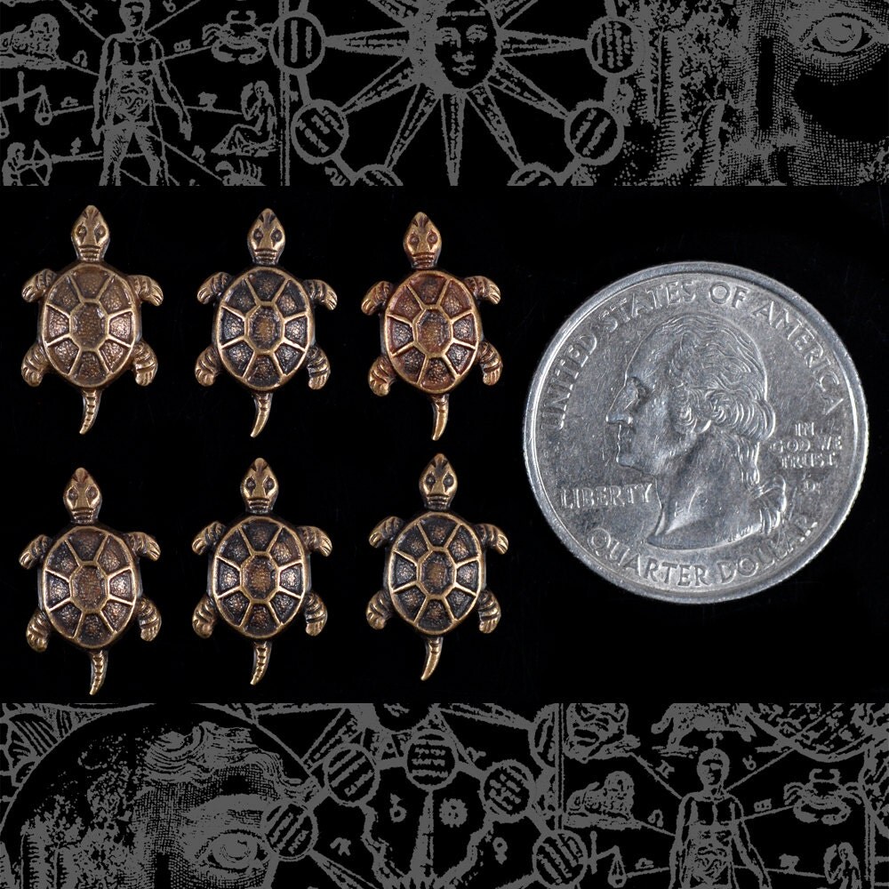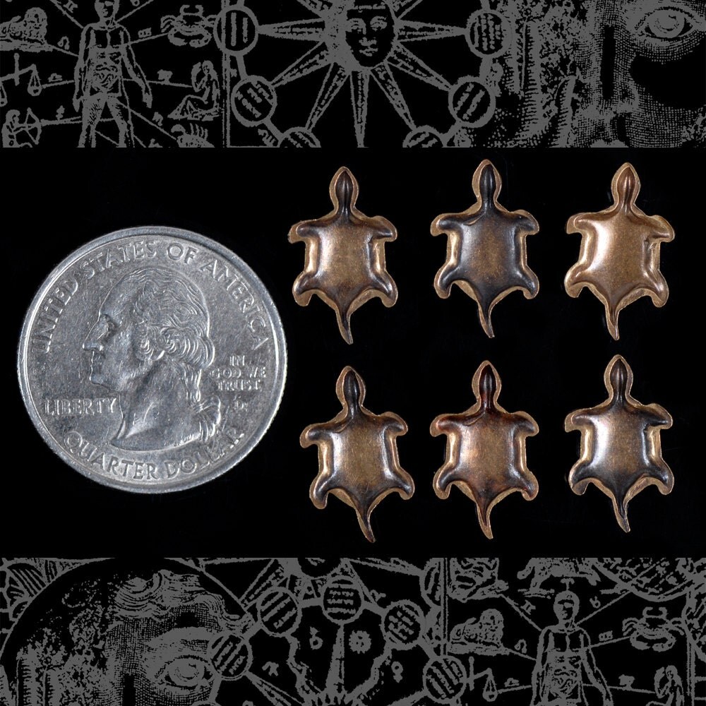 Antiqued Brass Turtle Stampings Charms - Set of Six - AB-C67