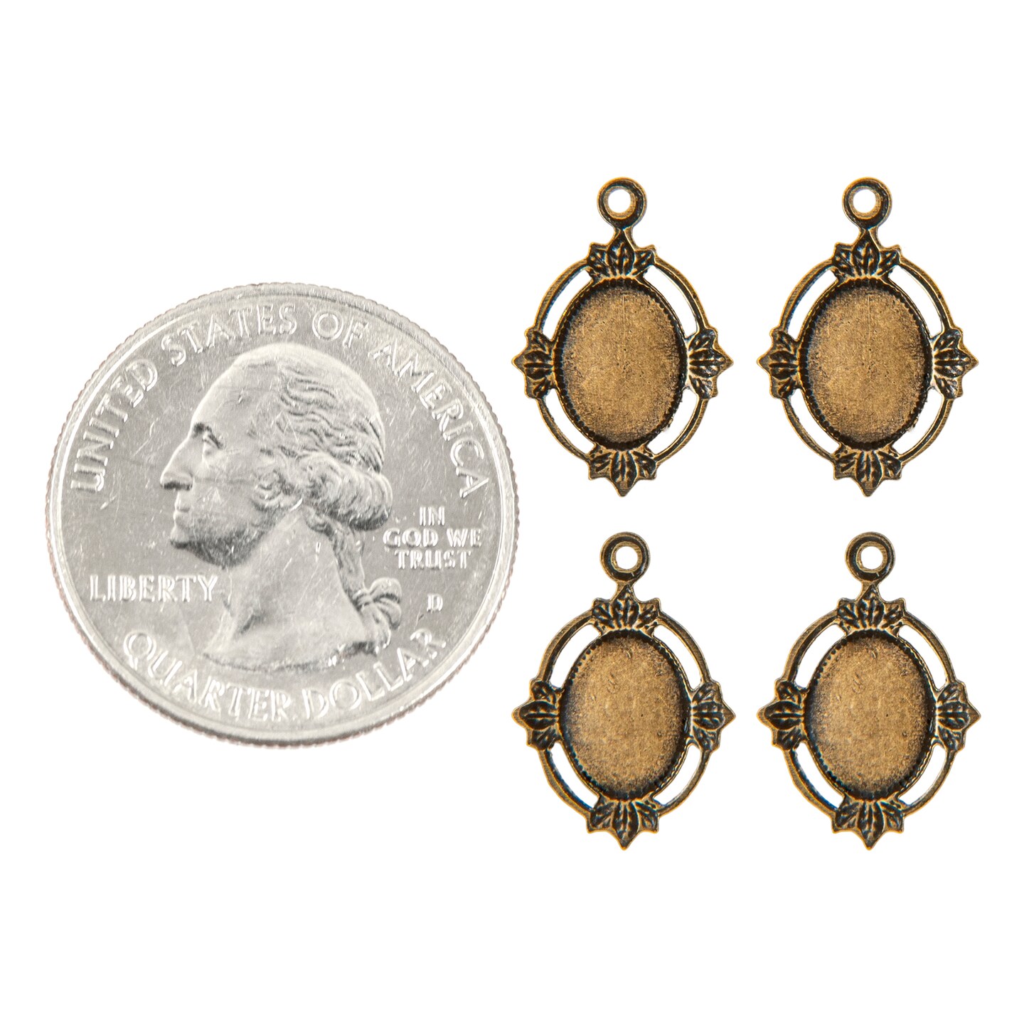 Antiqued Brass Very Small Frame - 8mm x 6mm - Frame for Cameo - Set of Four - XXX - AB-F51