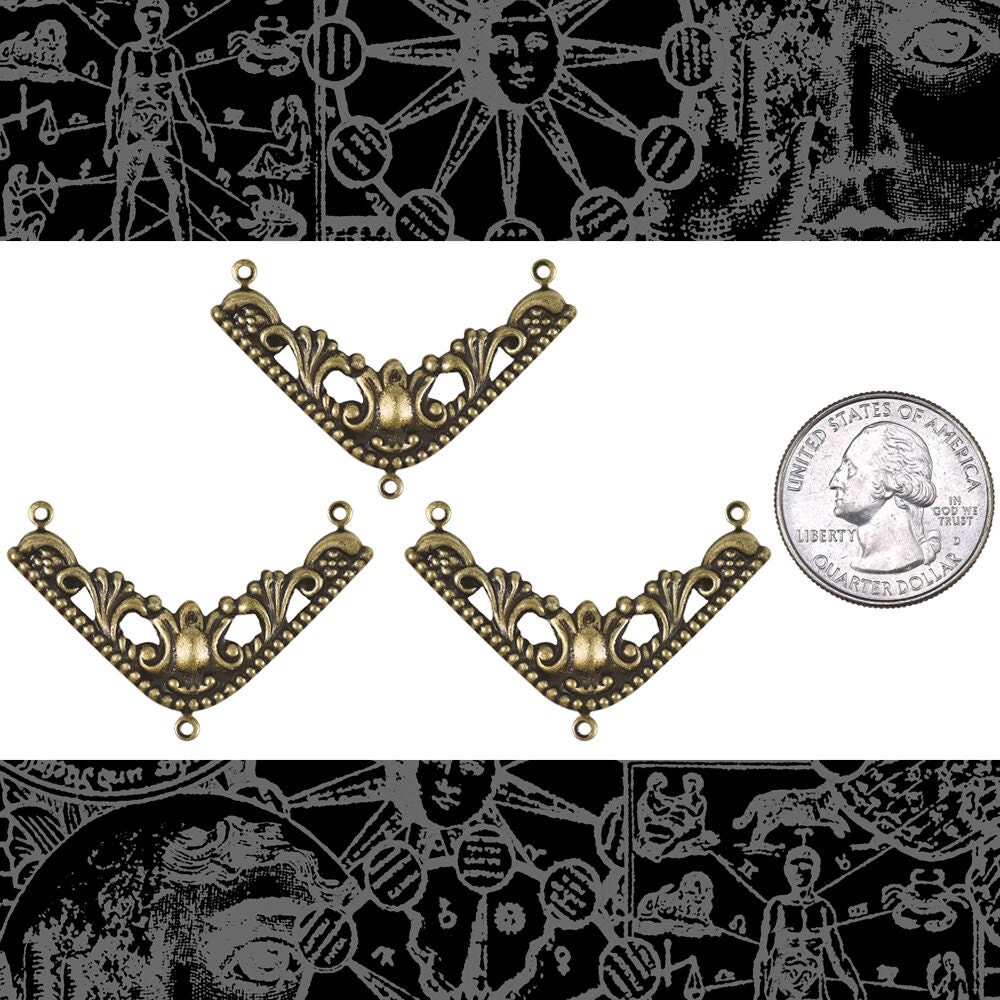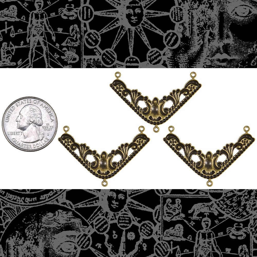 Antiqued Brass Victorian Corner Dramatic Connectors Set of Three - AB-3C37