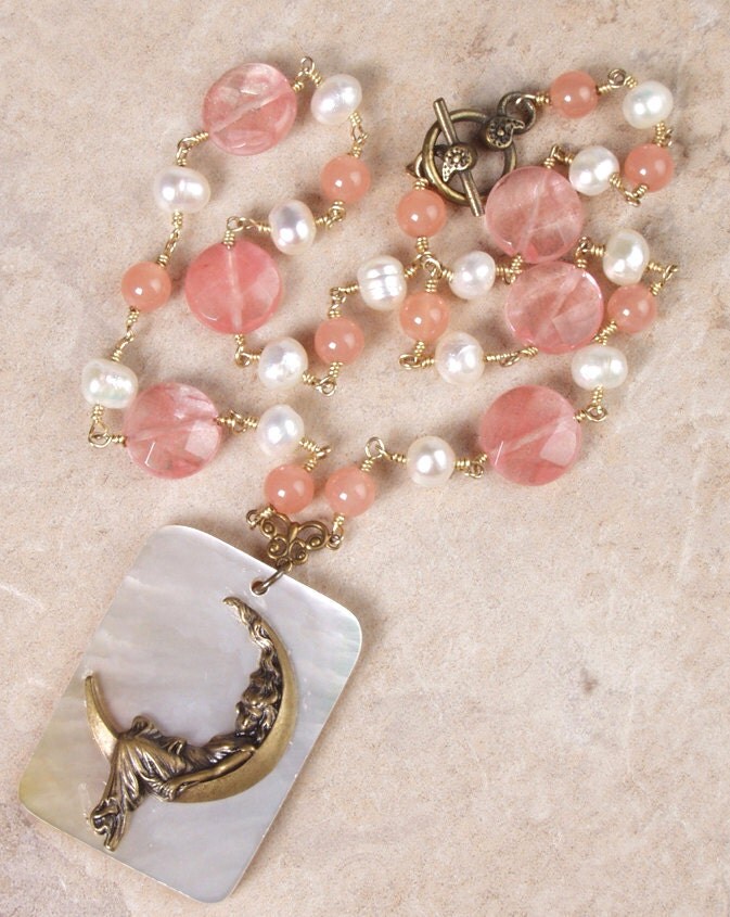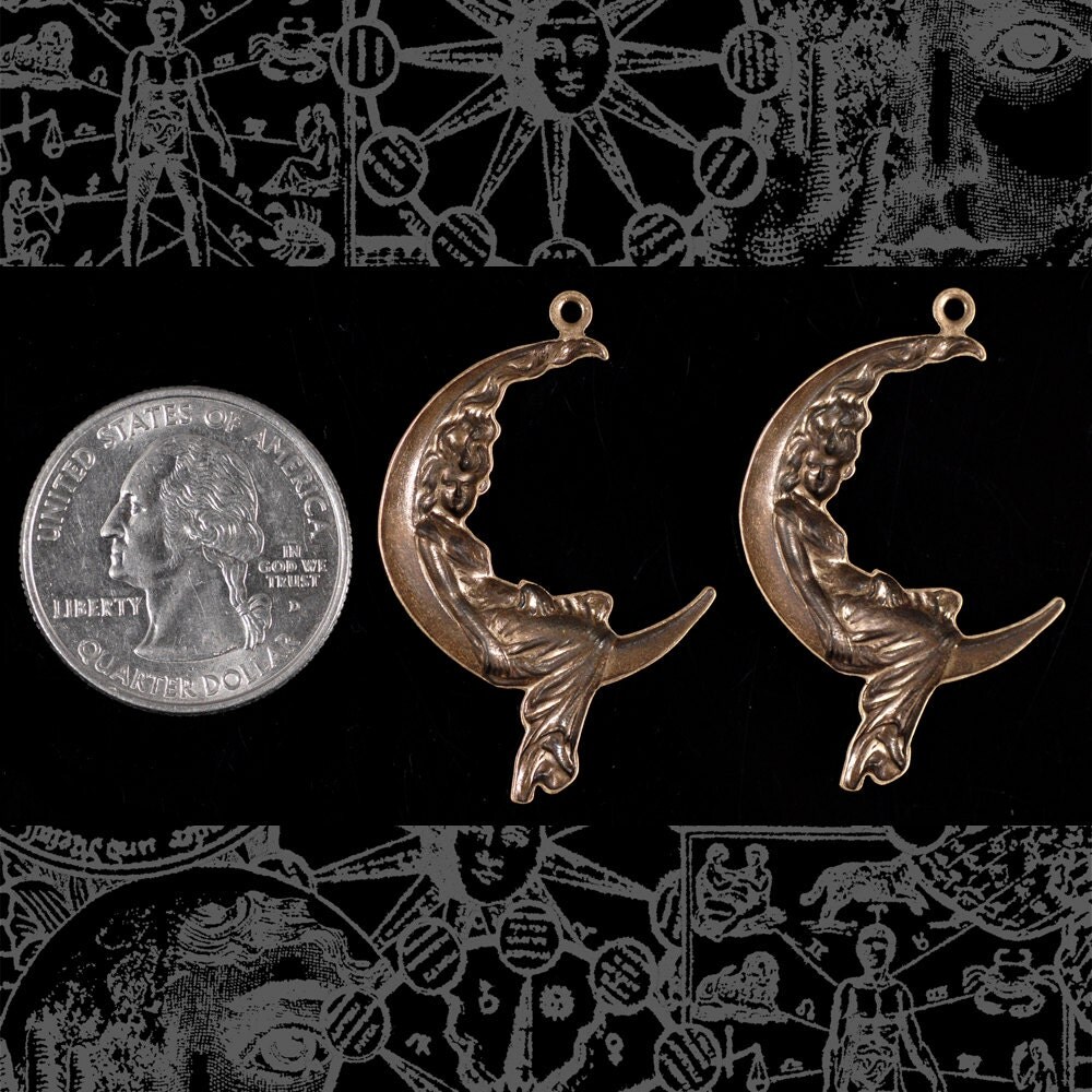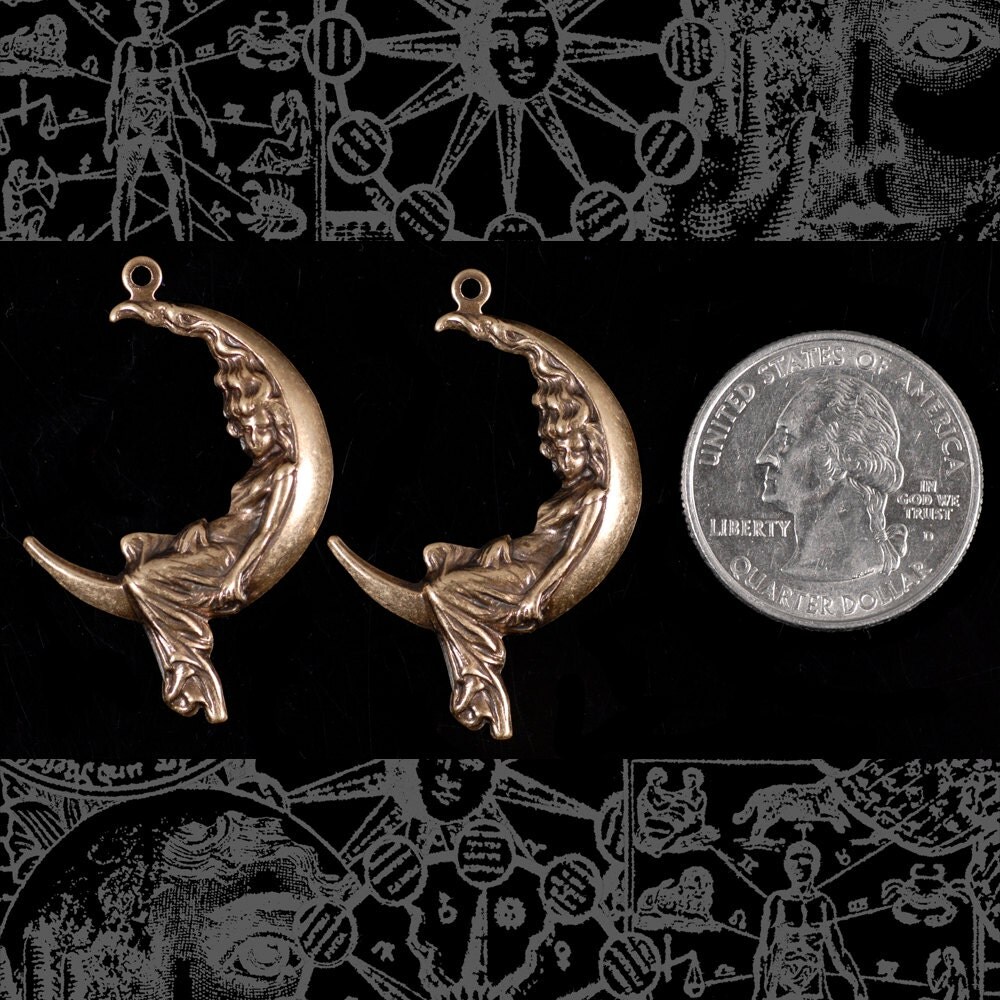 Antiqued Brass Woman Sleeping on the Moon Pendants - Set of Two - AB-P72
