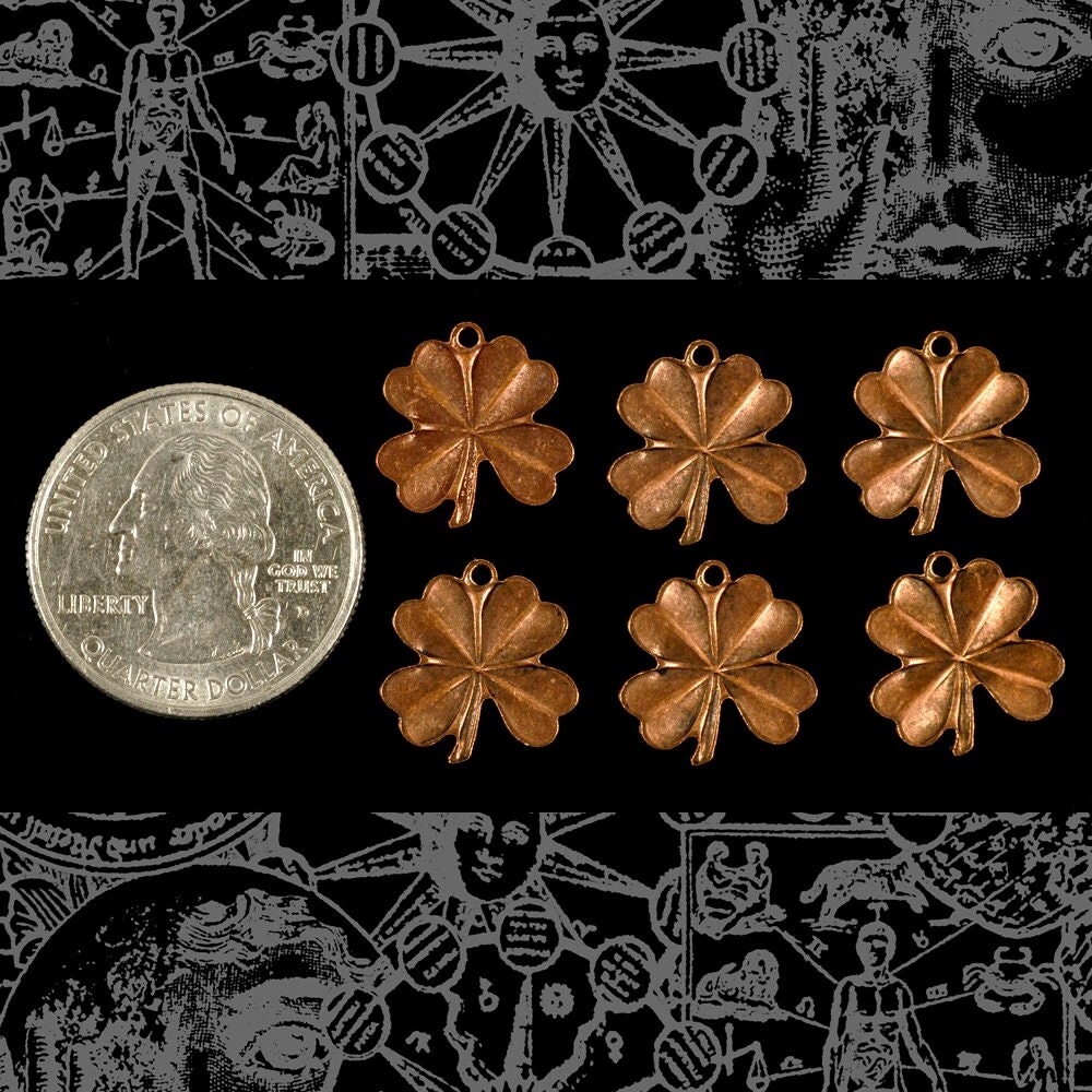 Antiqued Copper Plated Brass Four Leaf Clover Charms - Set of Six - C-C205