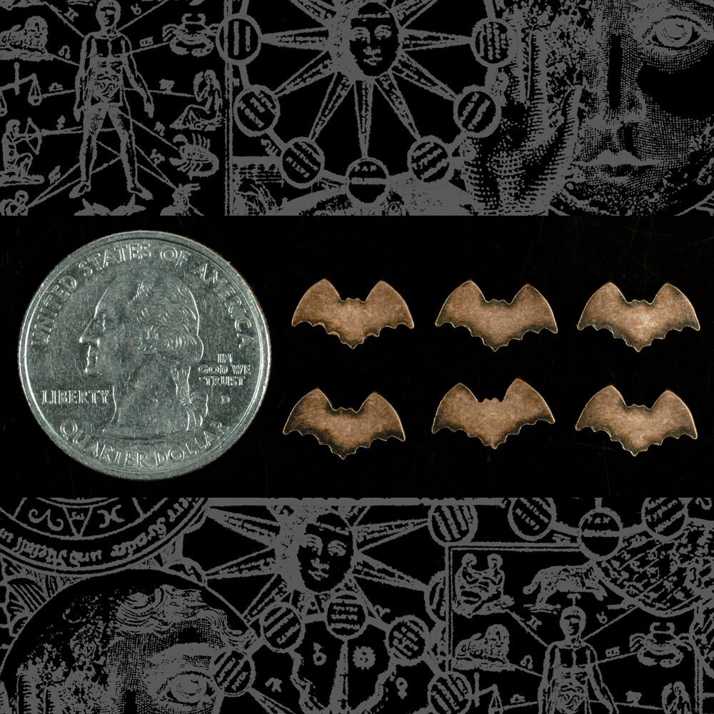 Antiqued Copper Plated Brass Itty Bitty Bat Stampings Charms - Set of Six - C-C92