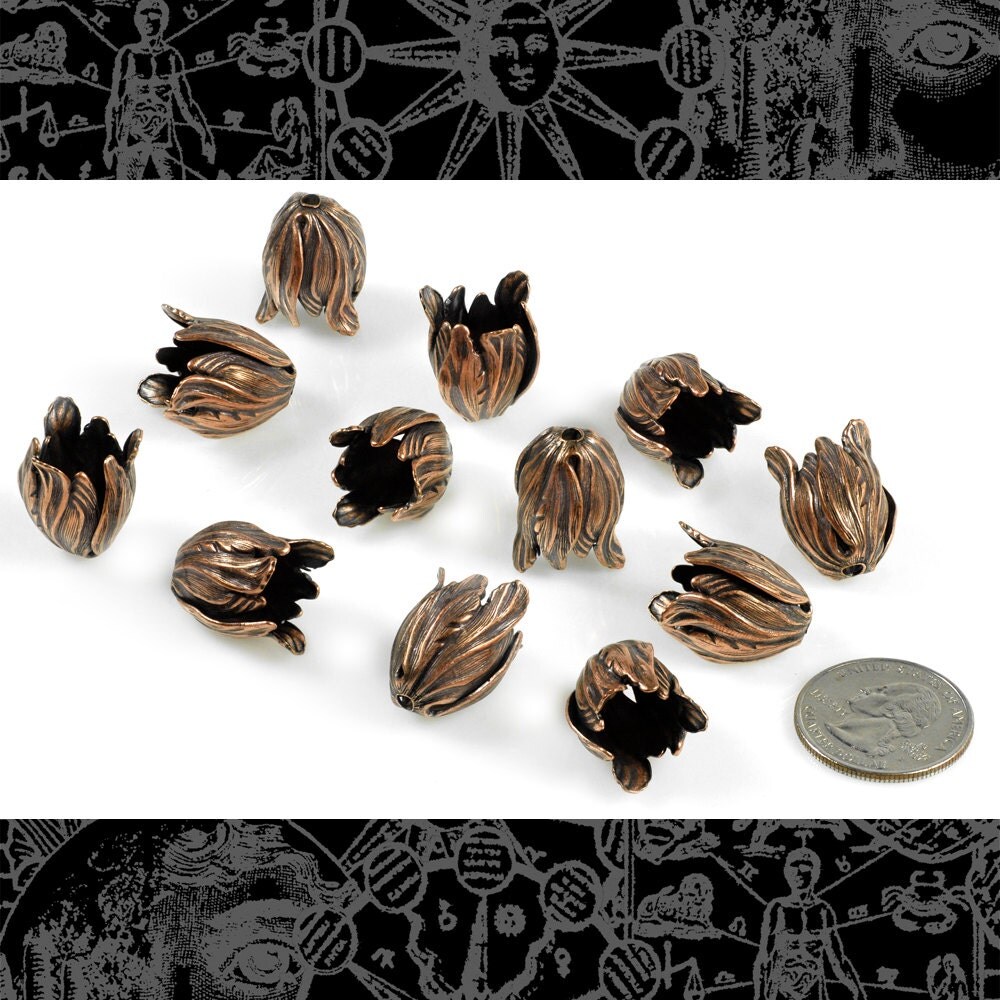 Antiqued Copper Plated Brass Tulip Beads Brass - Set of Twelve - C-BC04