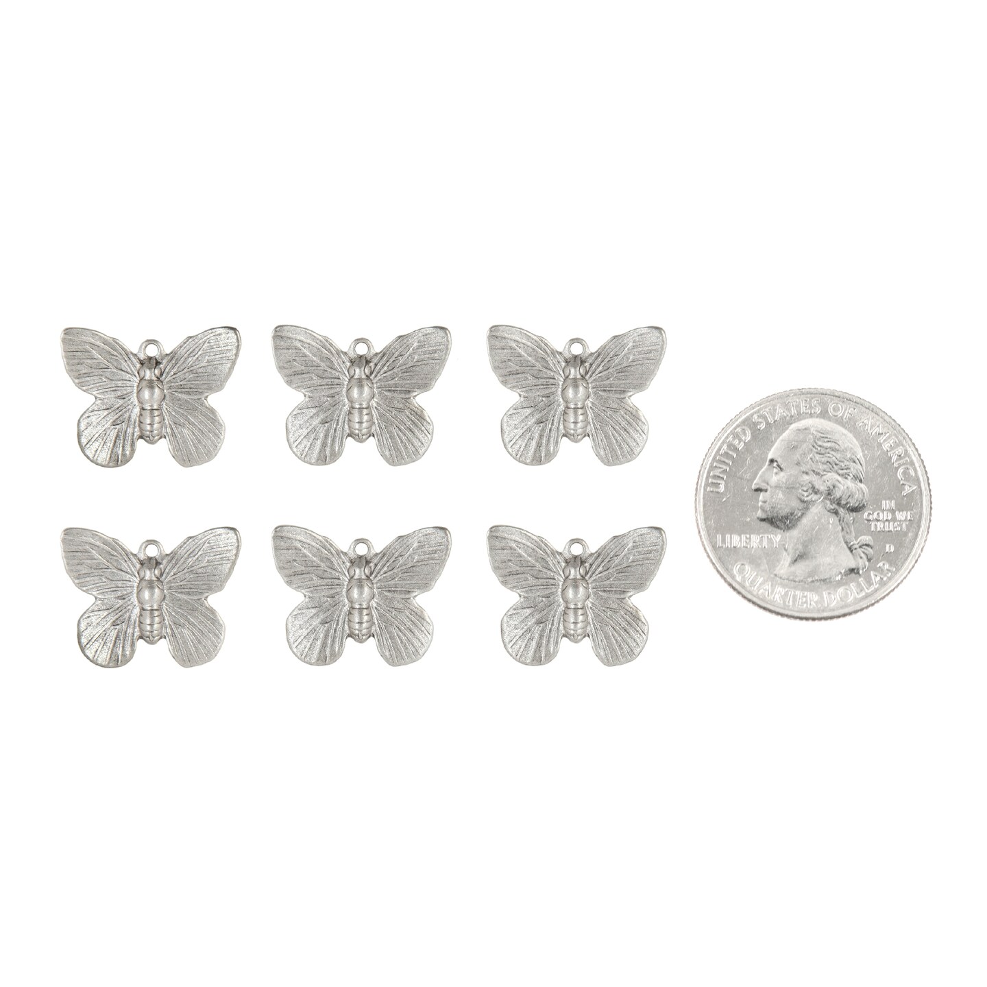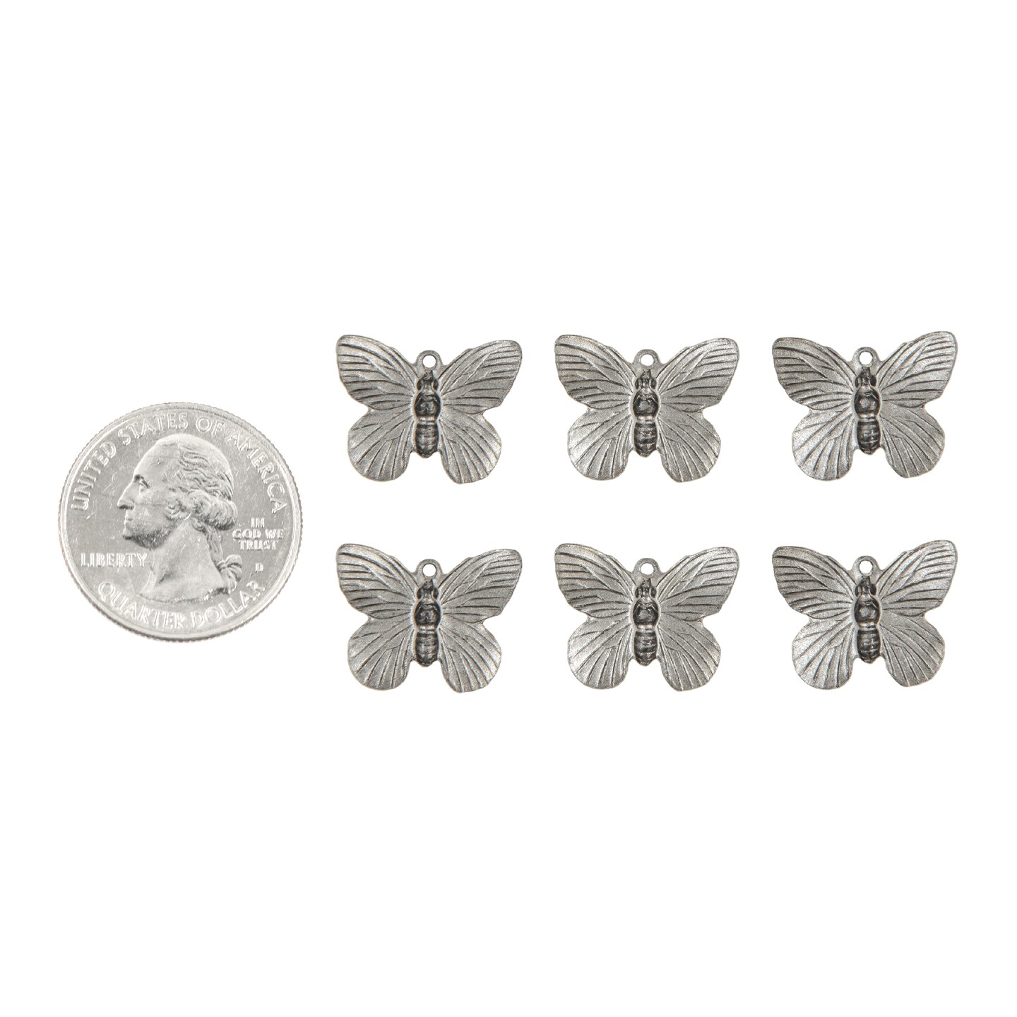 Antiqued Pewter Plated Brass Butterfly Charms - Set of Six - P-C107