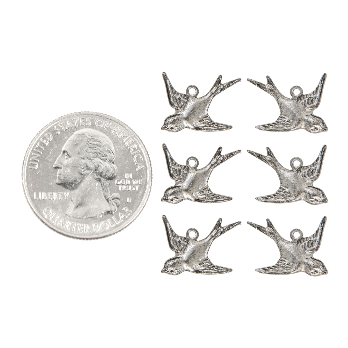 Antiqued Pewter Plated Brass Flying Sparrow Charms, Set of Six - *P-C03