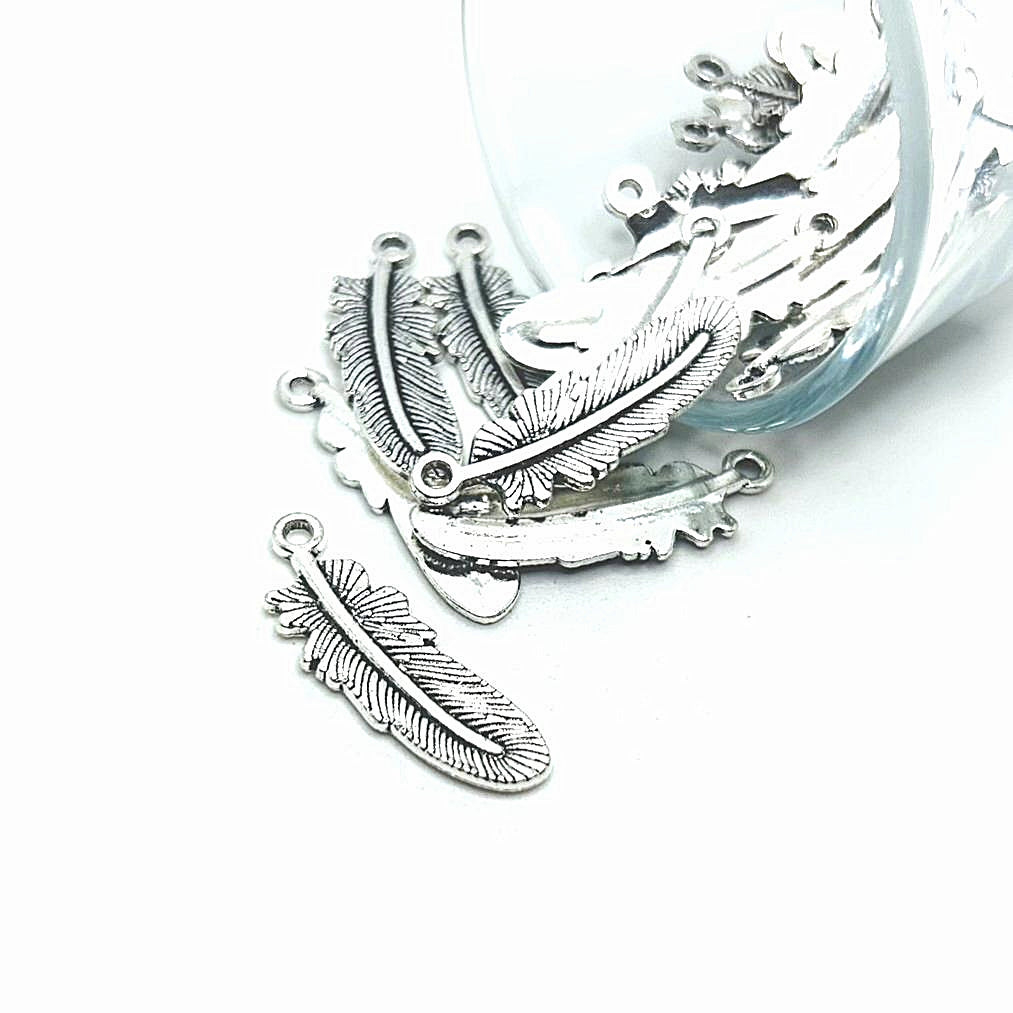 Antiqued Silver Feather Charms, 30x10mm