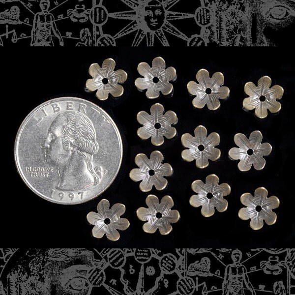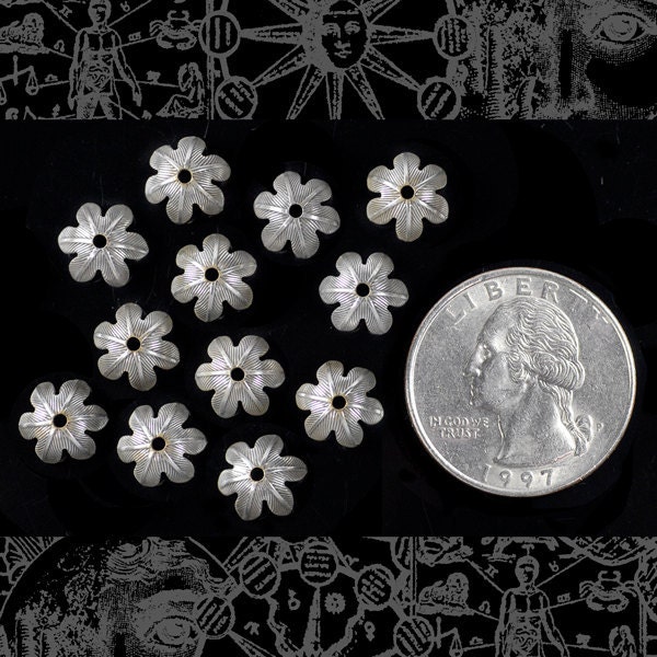 Antiqued Silver Plated Brass 8mm Floral Leafy Brass Bead Caps- Set of Twelve - S-BC12