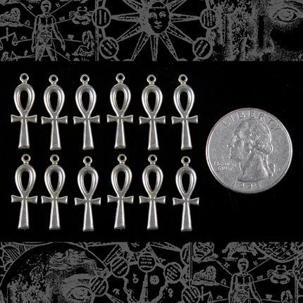 Antiqued Silver Plated Brass Ankh Charms - Set of Twelve - S-C02