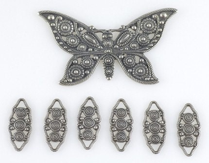 Antiqued Silver Plated Brass Butterfly Pendant and Connector Set - XXX - S-PS01